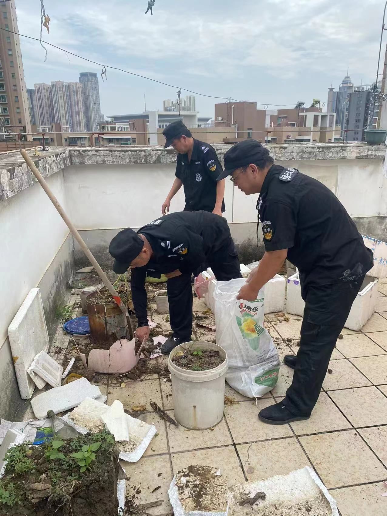 近日,玉兰里社区工作人员全面摸排垃圾死角,对辖区进行巡查,重点整治清理城市道路、乱堆垃圾等不文明行为。针对常青南园小区存在的天台乱堆放杂物问题,社区工作人员联合物业,对废弃家具、泡沫箱等杂物进行清理,同时对楼顶种菜的行为予以制止,还小区居民一个干净、整洁、清爽的环境。居民李阿姨说:“天台堆放杂物不仅不美观,还容易滋生细菌,平时想在天台上晒东西感觉都没法下脚。现在好了,杂物清理了,地面干净了,天台可以自由晾晒衣物了!”