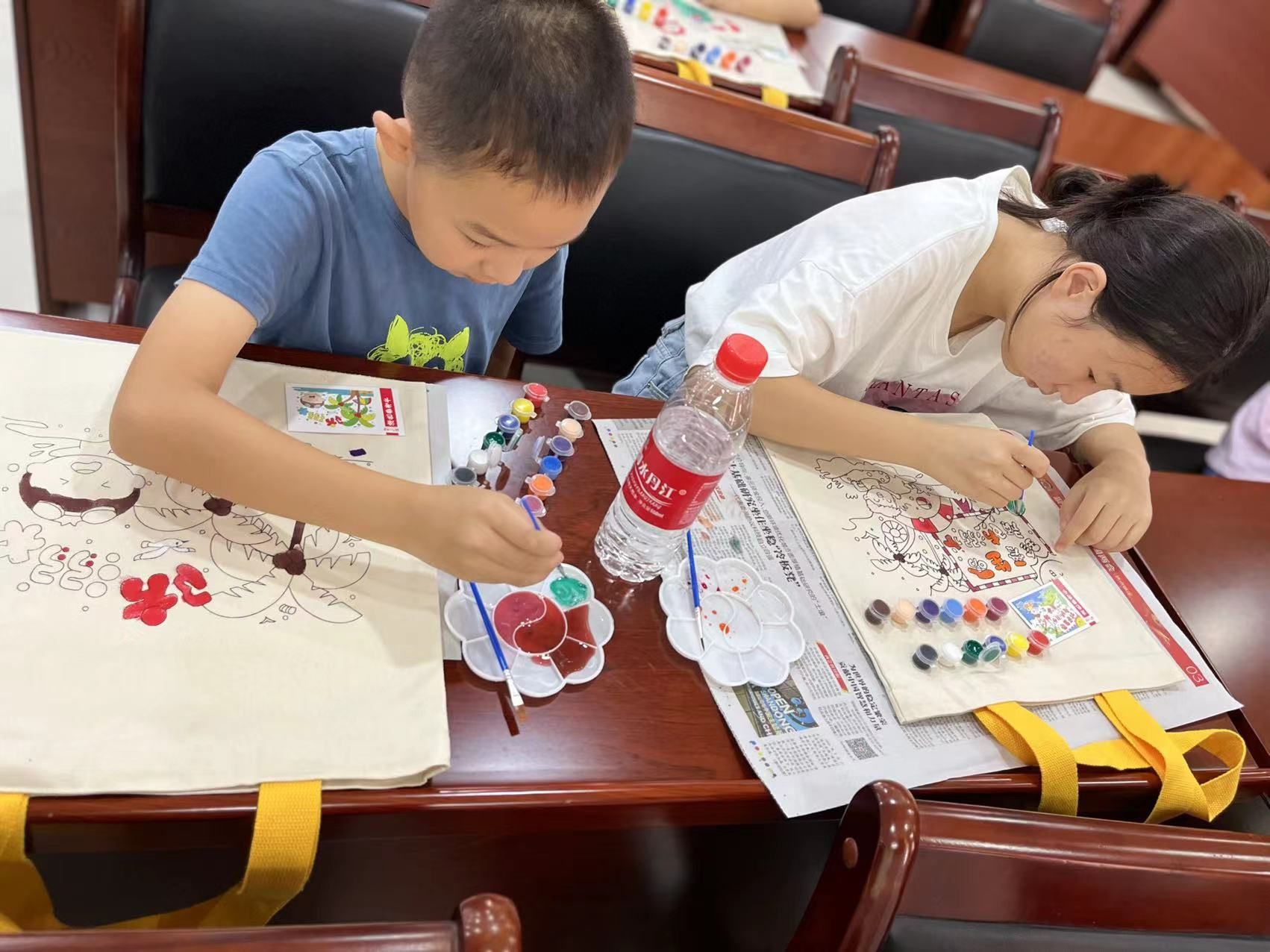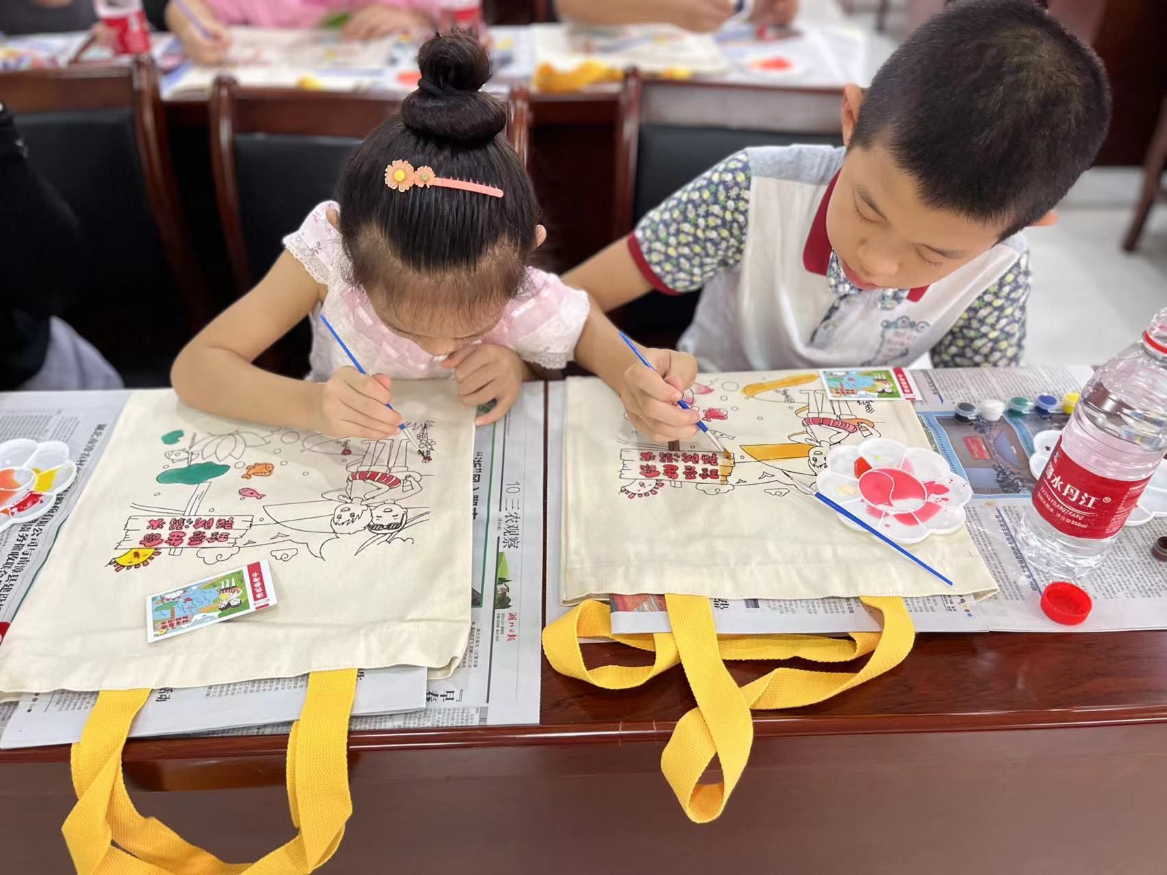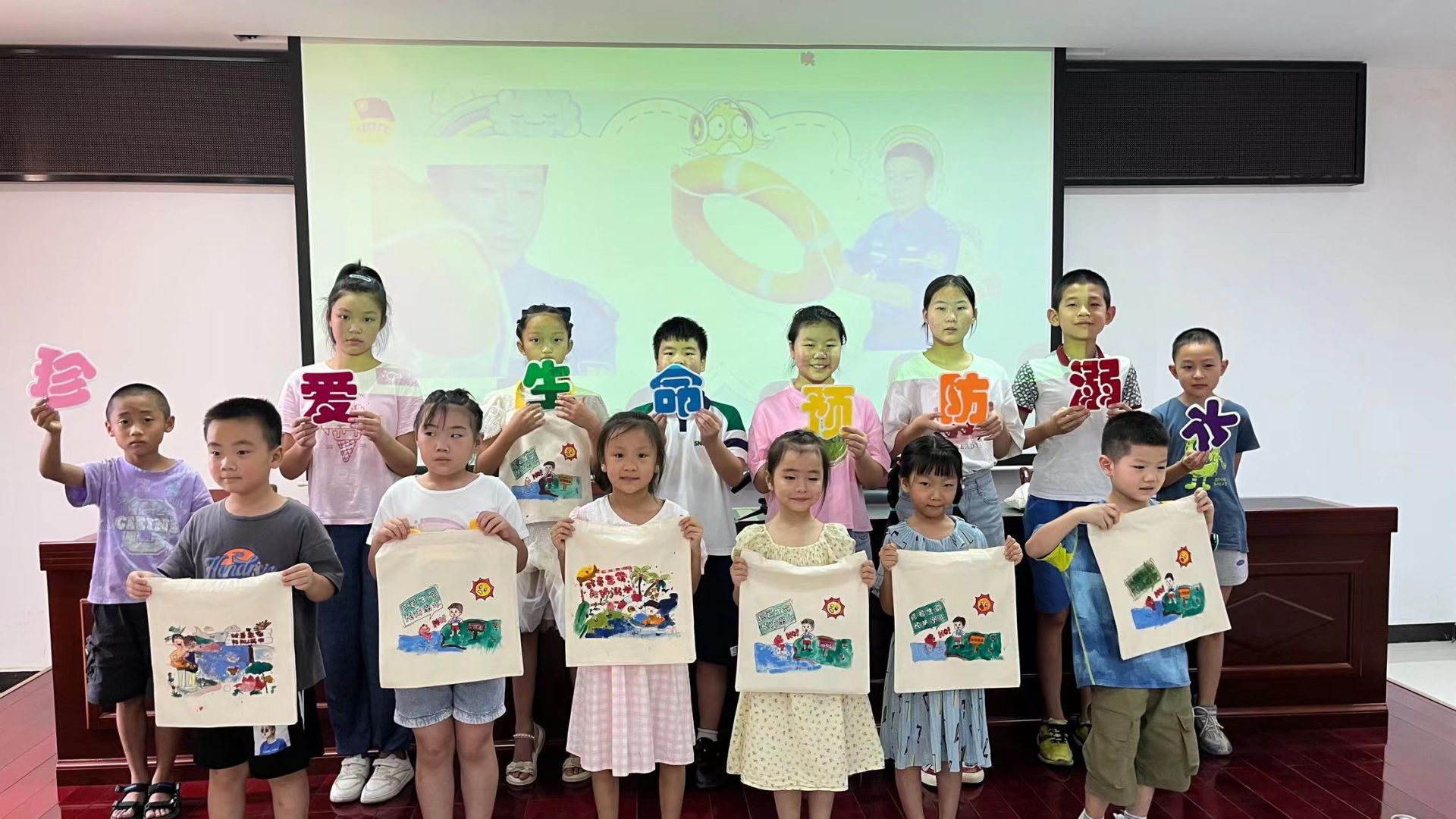 随后,孩子们一同共贴防溺水板报,认识防溺水标志。最后孩子们共同绘画防溺水宣传手袋,通过孩子们精心的绘画,一个个防溺水宣传手袋制作完成。