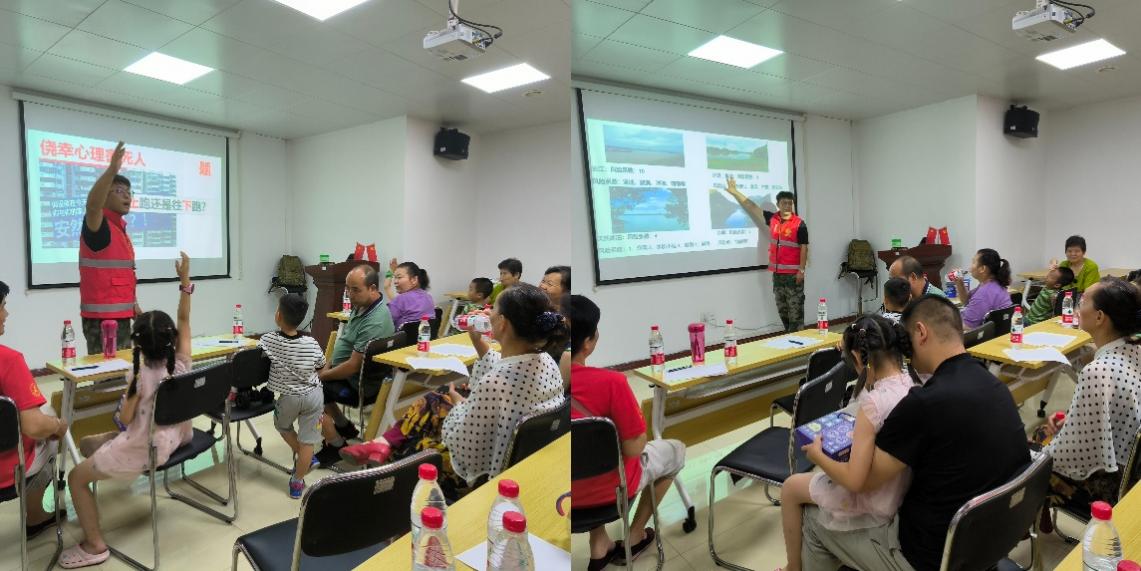 通过了解组员对应急安全问题的看法,社工认为不论是小朋友还是家长,都知晓安全的重要性,但未能掌握应对策略。为了帮助组员关于如何应对突发应急安全状况、极端天气应对措施等问题有清晰认知,社工邀请武汉重生应急救援队专业教官周翔老师为大家讲解应急安全知识掌握的重要性,并以意外伤害的视频作为引入,引发组员们对应急安全知识的关注。之后,通过“切菜手指受伤如何处理?”“游泳的时候体力不支怎么办?”“灭火器如何使用?”等日常安全问题与组员们进行有奖问答互动。