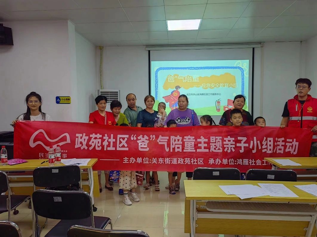为增强亲子互动,促进社区居民亲子关系和谐,掌握应急安全知识,8月17日,武汉东湖高新区关东街政苑社区联合鸿雁社会工作服务中心开展了“安全相伴初相识”的“爸”气陪童亲子应急安全小组活动。