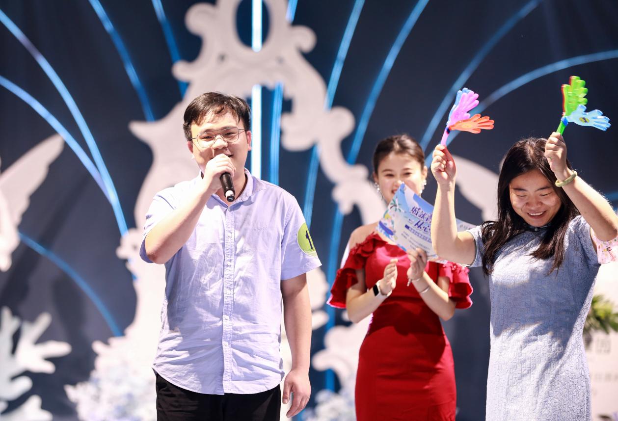 这是8月18日晚上,武汉东湖高新区九峰街道中心城社区筹备组联合武汉光谷中心城建设服务中心、宝业璞园开展的“城就青春 从心出发”夏日派对活动现场。主持人的介绍让这个浪漫夜晚正式拉开序幕。
