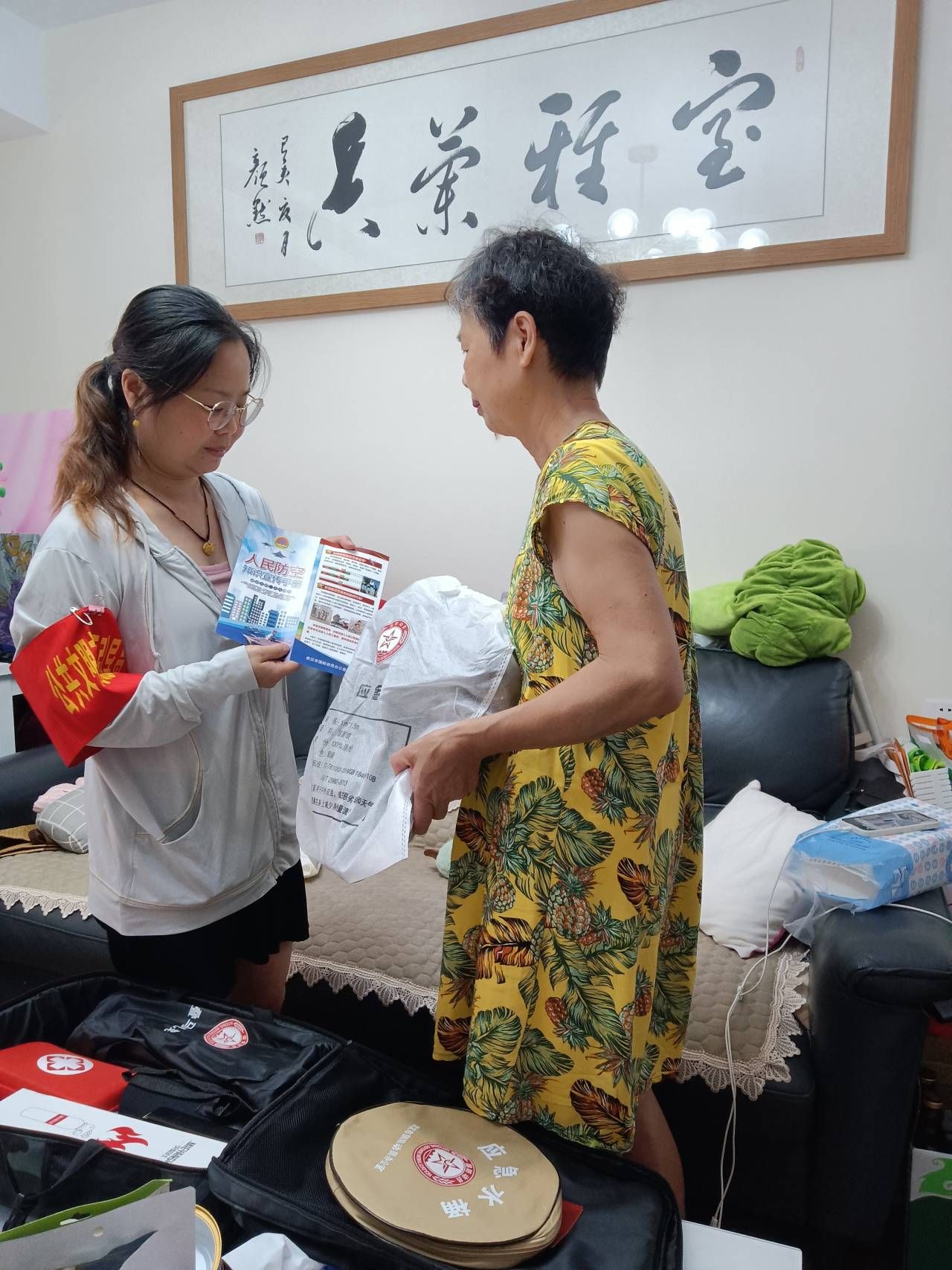 为加强国防宣传教育,增强社区居民国防观念和人防意识,普及人防知识和防空救灾知识,近日,武汉市武昌区南湖街道都市桃源社区网格员和志愿者进行入小区人防知识宣传。