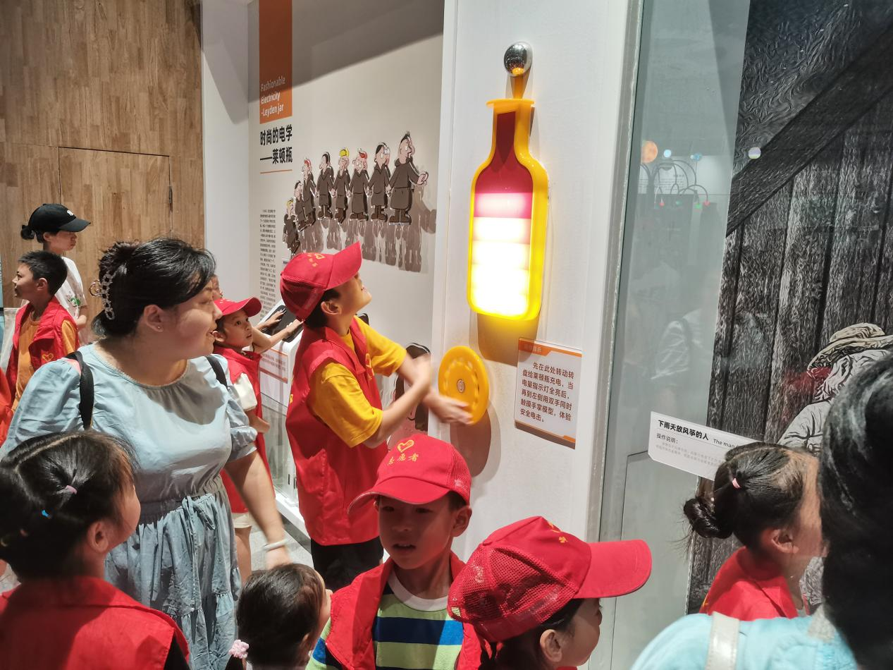 科学风暴展厅中,孩子们了解了科学的起源,感受人类认识科学、运用科学、反思科学的过程,感受了“疯狂特斯拉”、体验了储存静电的莱顿瓶等项目。随后,青少年们和家长一起来到数学和物理的世界,亲眼见证了龙卷风的形成过程、认识了发电机的工作原理,感受人体溜溜球,体验转动惯性的力量;走进法拉第笼,与高压电进行了近距离接触,听电弧奏响奇妙的科学乐章……多种体验激发着青少年们的动手能力,孩子们边观察边思考,通过自己的不断尝试,既增加了科学知识,又感受到了科学的奥秘,同时收获了快乐。