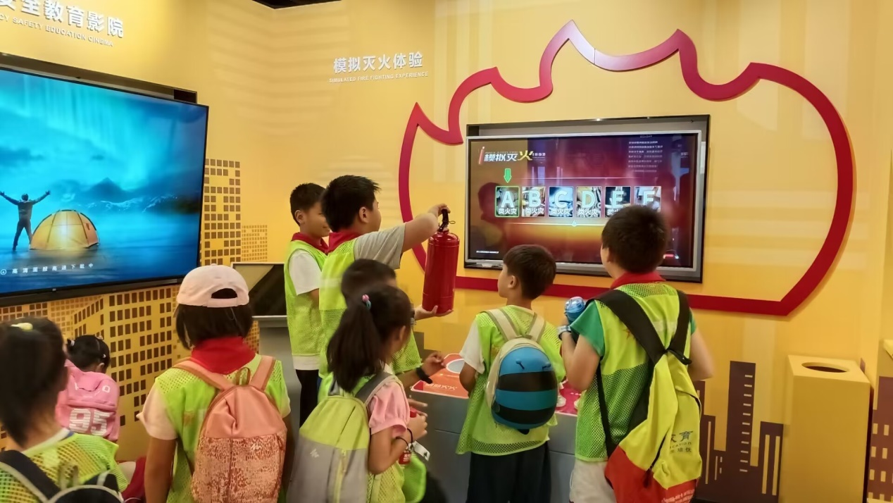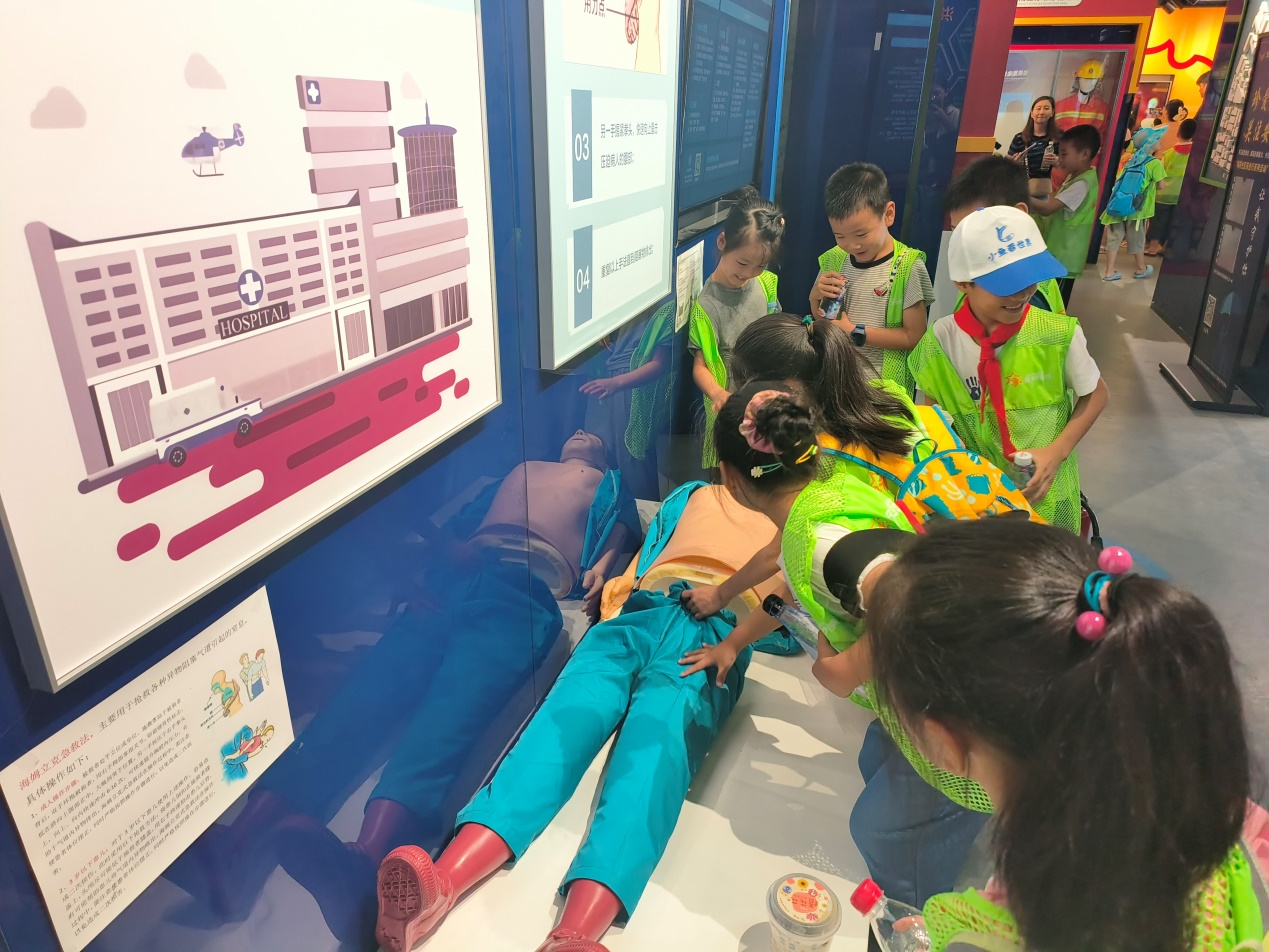 课堂结束后,在老师和志愿者的带领下,来到了应急科普体验馆参观。听消防队员介绍消防车的各部分结构及其功用。学生试穿消防衣,应急知识答题等。观看宣传车短片,并认真做好笔记。小组交流讨论消防知识和自救措施。学生对应急急救工作有了更深入的了解,也掌握了一些实用的急救技能。他们表示将会将这些知识传递给家人和朋友。