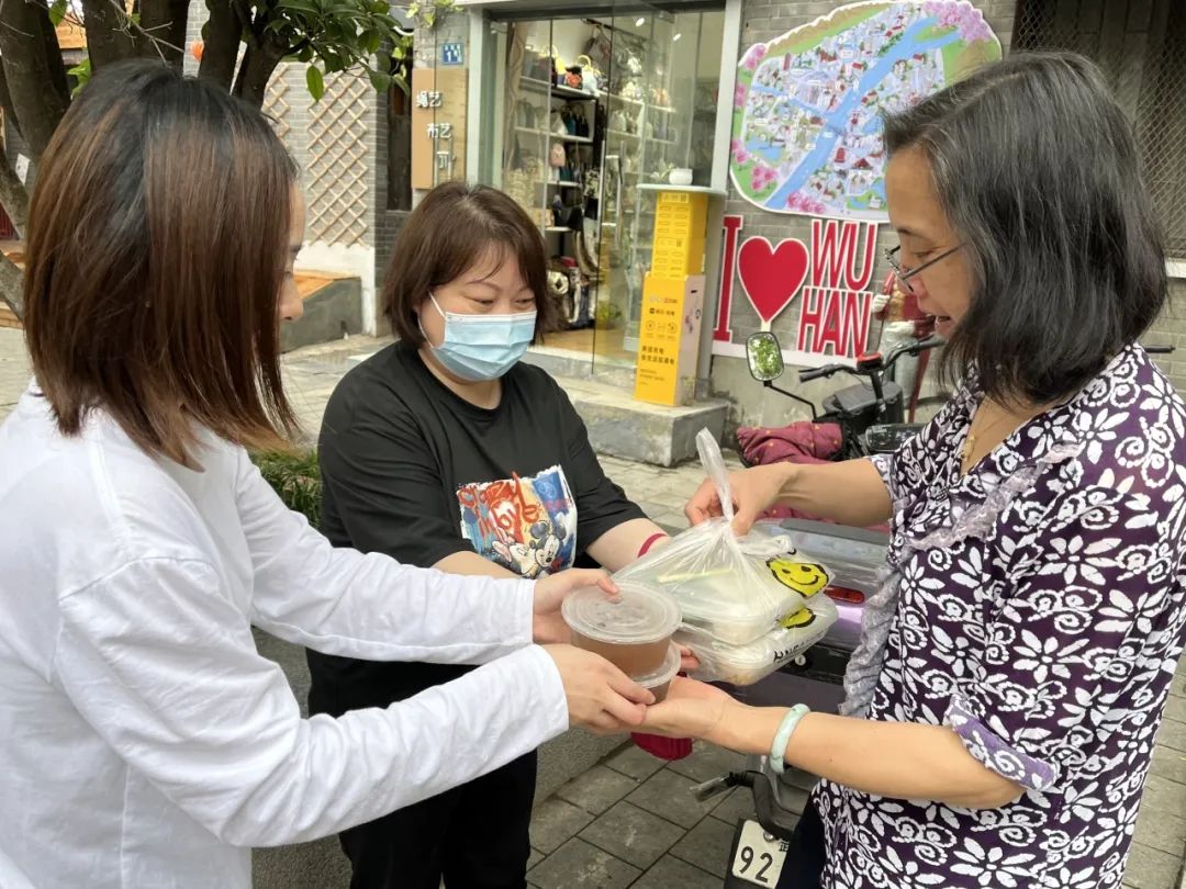 昙华林商户联盟的代表们在“阳光下午茶”活动中提出,昙华林社区有许多特色餐饮商铺,可以进行资源链接和联动共建,为有需要的居民和商户员工提供帮助。商户联盟理事会将这一提议与社区党委沟通,社区立即组织共建单位、商户联盟、社会组织、党员代表、企业员工代表等不同群体召开议事协商会,共商共议破局之道,多方达成共识:由商户联盟成员单位青丘镇提供物美价廉的日常盒饭,并提供免费的送餐上门服务,通过“社区推动、市场参与、居民受益”的形式,以便民利民为主旨解决辖区“吃饭难”的问题。