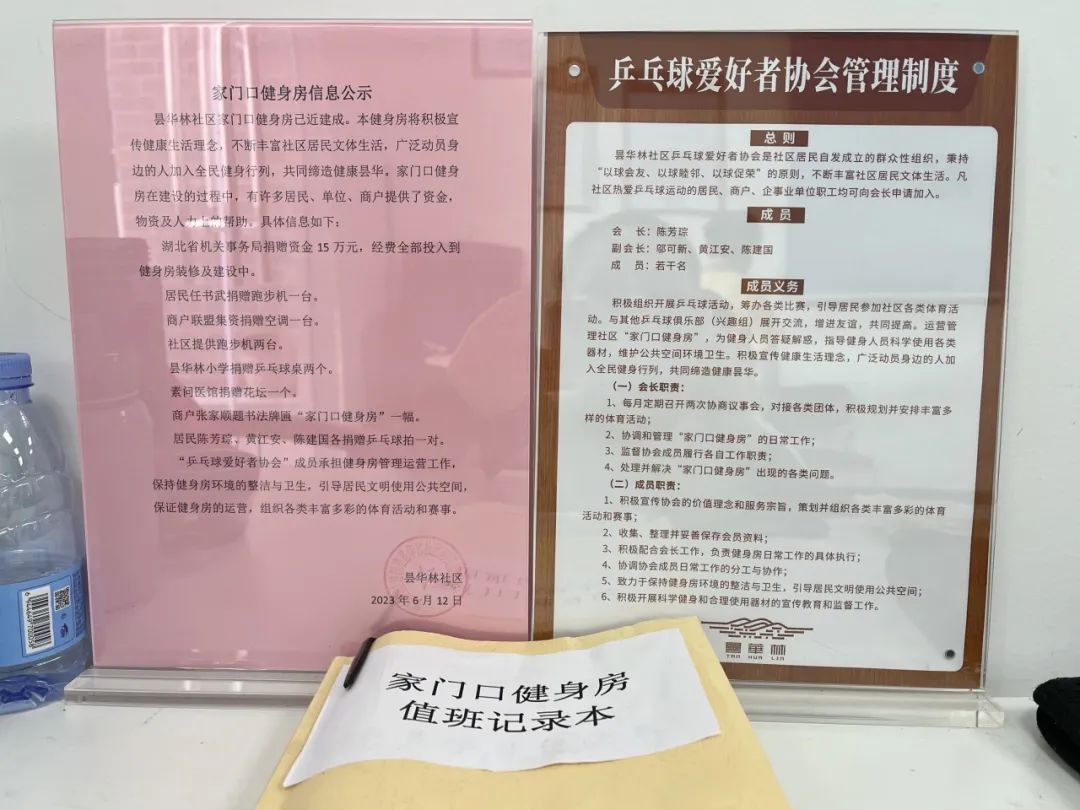 场地建好后,针对健身房后续的日常运营和管理,社区组织居民召开议事会,会上许多居民主动提出捐赠家中闲置健身器材,增加体育设施。昙华林社区乒乓球协会提出“这种公共健身房,万一有人不遵守规则怎么办?”有居民提出“那就收点钱呗”。大家达成一致共识:实行会费制,每人每天一元钱,按照半年180元收取,有偿使用,会费也将用于健身房日常运营和维护中。