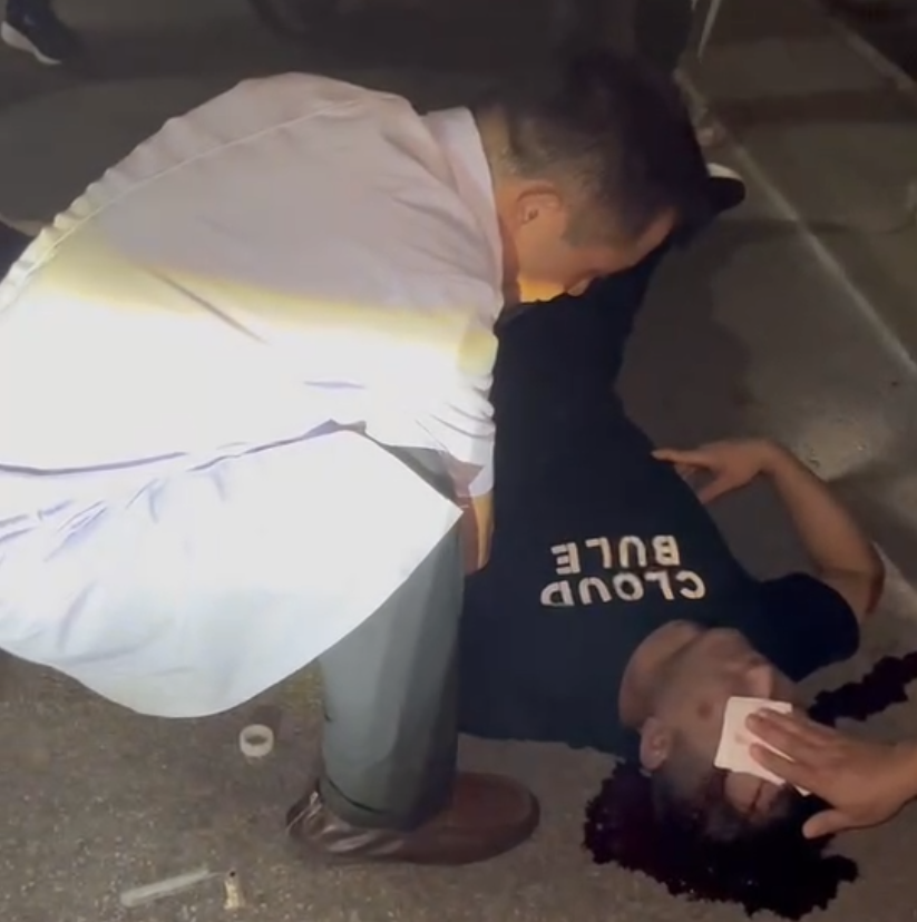 8月22日晚八时左右,正在南湖街道恒安路附近遛狗的居民田姑娘突然听到有呼救声,她马上把狗绳交给同伴,快步上前查看,原来是一位居民疑是突发疾病,头部撞到硬物血流一地,已经陷入深度昏迷。