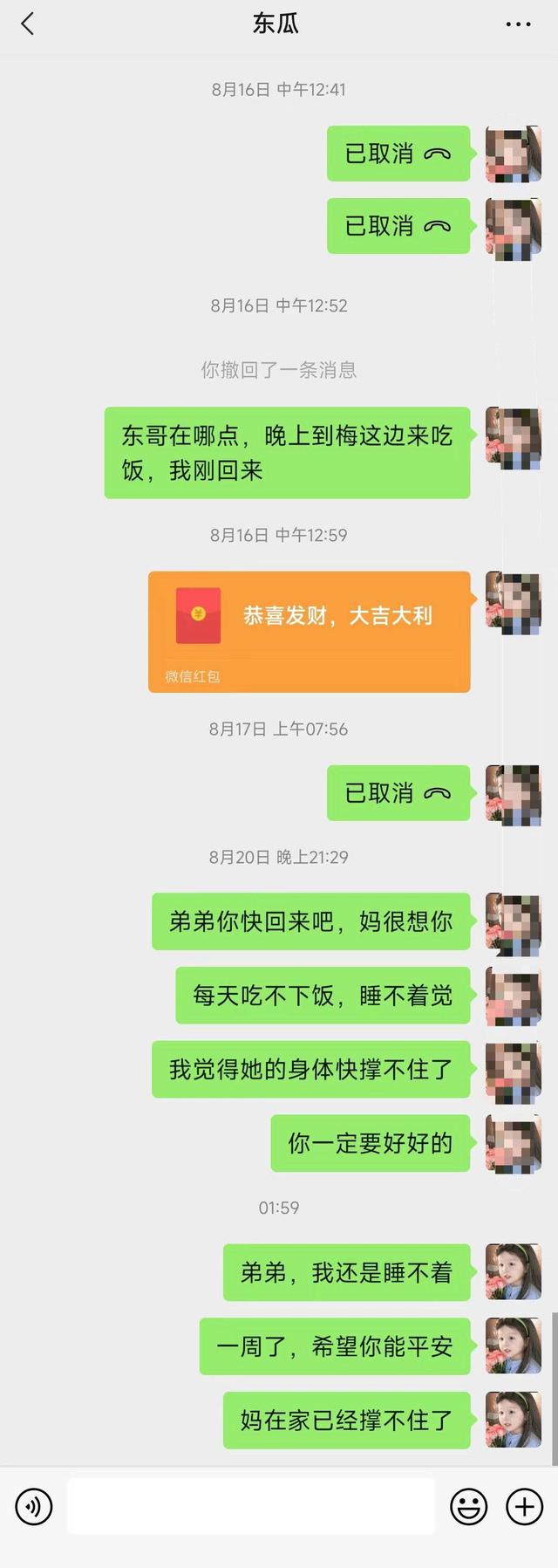 15日下午两点,家里发现,早该落地的王小天手机还处于关机状态。可能是手机没电了,家也没多想,直到当晚,还是关机状态,一家人才觉得不对劲。