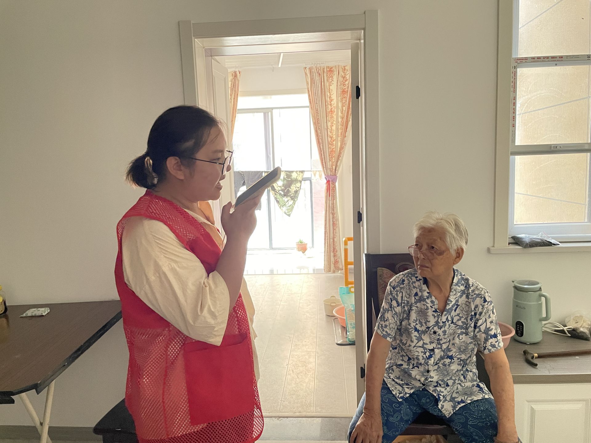 在与陈婆婆聊天时,小李得知陈婆婆没有手机,家中只有一台座机,但座机有时候不能接听和拨打电话,十分不便,小李便主动帮她修理座机,重新进行设置,并且留下社区电话和她本人的电话。随后,小李拨打了陈婆婆女儿的电话,传达最近婆婆的近况,也让婆婆和其女儿沟通交流了一会。临走前,网格长小李还不断的叮嘱婆婆注意休息,有需要随时联系。