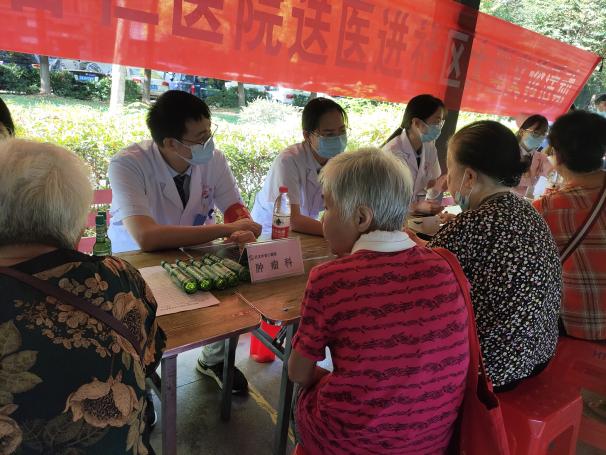 活动还没开始,社区的老人们早早地就来到了活动地点自觉地排队等候。今天的专家组由肾内科、肿瘤科、皮肤科、风湿免疫科以及院前急救科的骨干医生组成。专家组的几张桌子一字排开,居民们按各自的需求进行咨询,大部分老人耳朵不太好,医生们耐心对他们的病情叙述、问题咨询作出解答;同时,由于部分老年人有多重疾病,会吃很多种药,因此用药的安全也是困扰他们的一个难题,医生现场均给予了专业的用药指导。“奶奶,您今天的血糖有点高”,护士正在给居民测血糖、量血压,并把检测有异常的老人交给旁边的医生,让医生给出正确的指导。