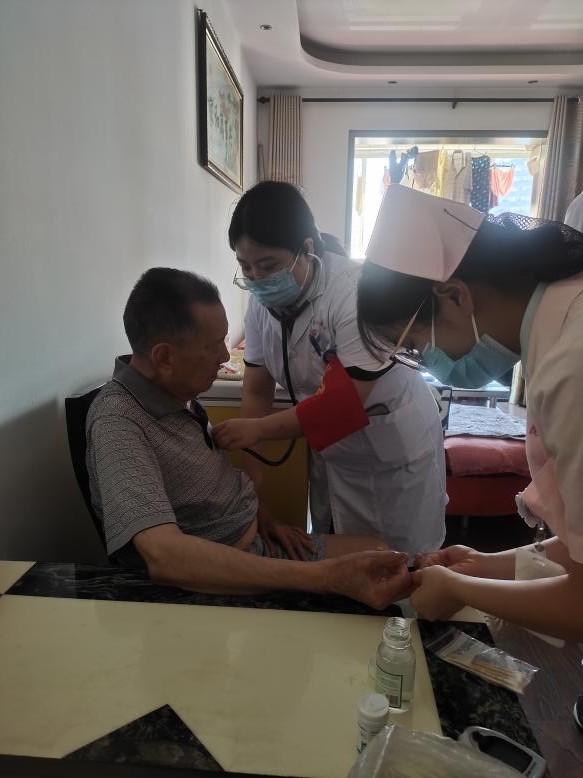 针对部分行动不便出门的高龄老人,普仁医院专家组的医生在社区工作人员的陪同下上门为老人义诊,其中王爹爹90岁了,上周不小心在家跌倒,右侧背部有於青,和老伴住在一起,由于儿子长期在外地上班,出于怕麻烦,没有去医院。这次上门的医生为老人做了心肺的听诊以及血糖血压的检测,给老人作了触诊体检,发现老人可能有骨折的风险,建议家人尽快带老人去医院做检查;专家组医生对另2户上门的老人也给予了专业会诊、用药指导。