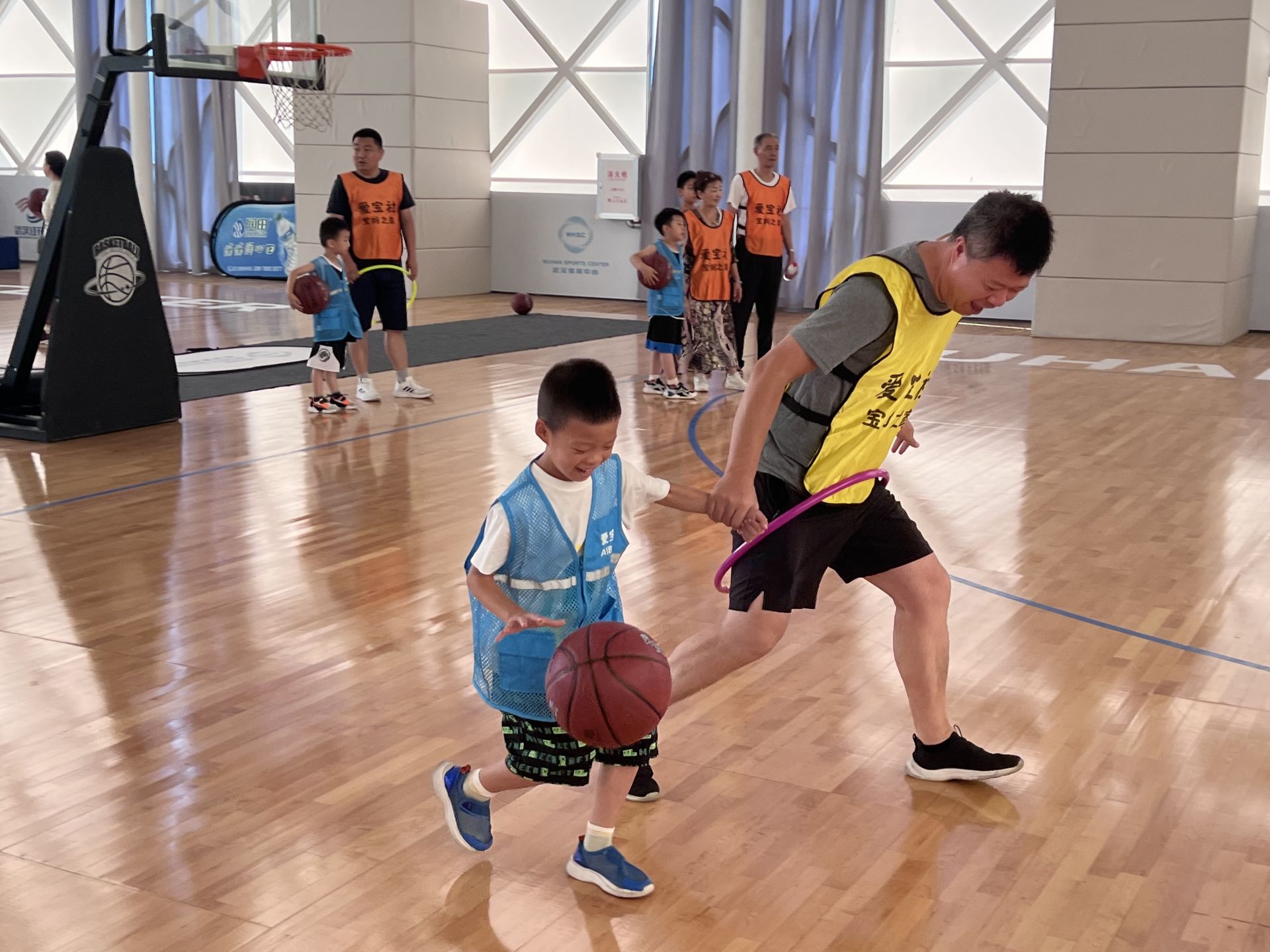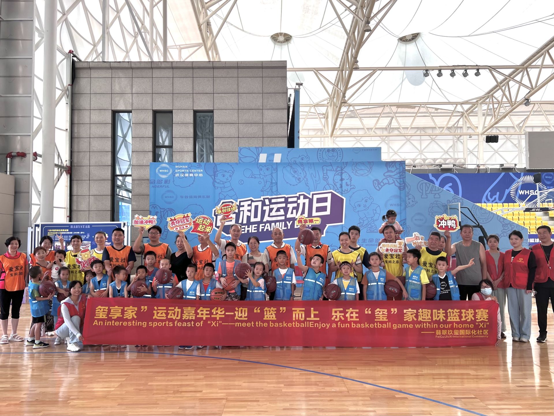 8月23日上午,武汉经开区沌口街道翡翠玖玺国际化社区在武汉体育中心合和篮球馆内组织了一场“玺享家”运动嘉年华---迎“篮”而上,乐在“玺”家亲子趣味篮球赛,邀请20对中外亲子家庭参加。