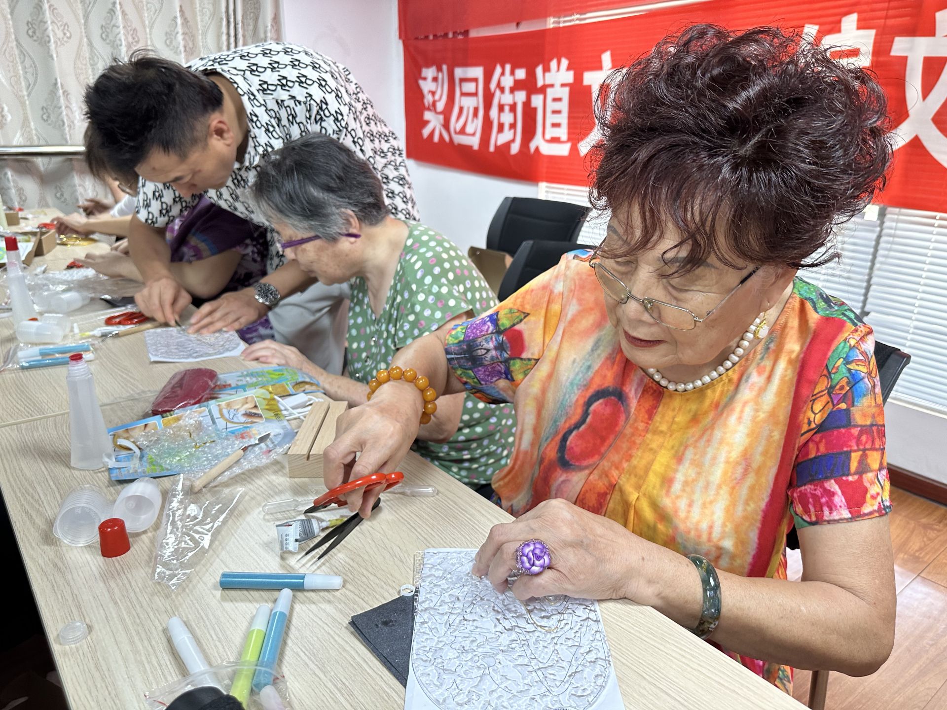 “以前电视上看手工匠人打磨一件工艺品,是件很了不起的事情,当自己也可以手工制作景泰蓝掐丝珐琅画,感觉很有成就感、获得感,感谢社区带给我们一次体验的机会。”参与活动的吴阿姨说到。
