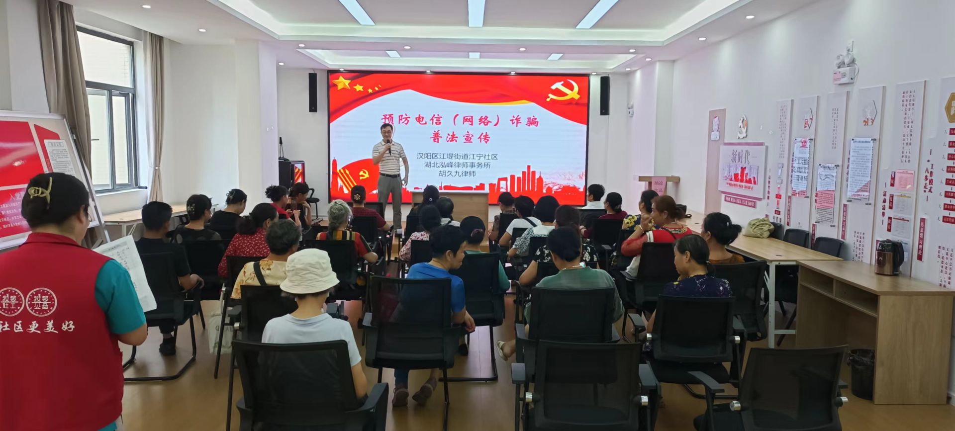 为有效遏制老年人诈骗案件高发势头,不断提升社区老年人防骗识骗能力,最大限度减少群众的经济损失,构建和谐稳定的社区环境,8月24日,武汉市汉阳区江堤街道江宁社区新时代文明实践站联合江堤街社工站、牧笛社工邀请驻社区律师胡久九开展“预防电信(网络)诈骗”普法宣传活动。