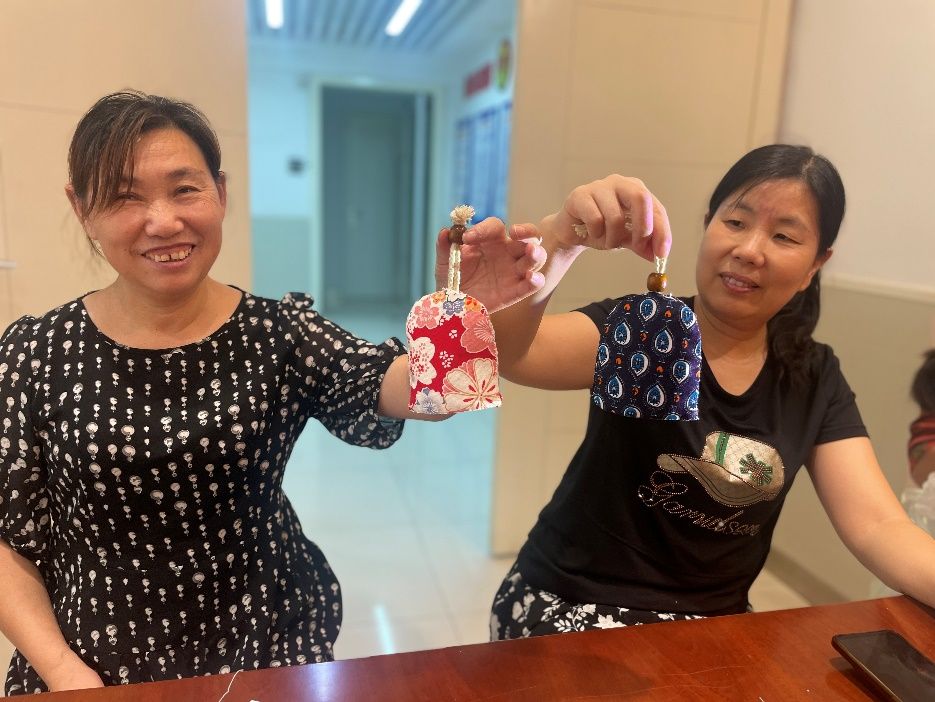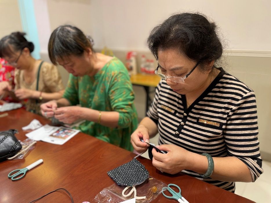 活动过程中,专业的心理咨询师引导大家用手中的线和布,将平凡的钥匙包转变成个人的独特作品。每一个细节的把握、每一次扣线的动作,都锻炼了居民们专注力的培养和心理调适。大家在享受手工制作乐趣的同时,也体验到了从烦恼中解脱出来的喜悦。