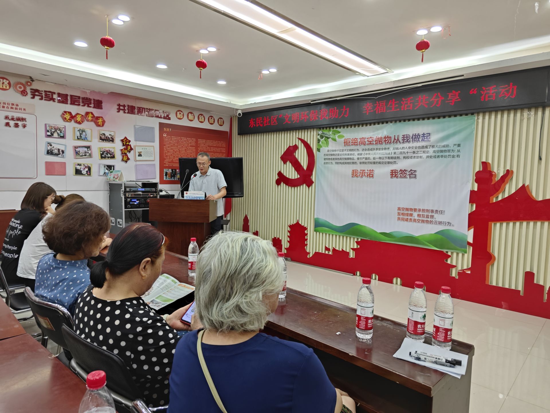 为深入贯彻党的二十大精神,营造绿色文明的生活风尚,积极履行市民公约、居民公约,开展“武汉以我为荣”文明素养提升行动,宣传倡导文明健康绿色环保的生活方式,2023年8月24日,武汉市江汉区花楼水塔街道东民社区新时代文明实践站举办了一场“文明环保我助力 幸福生活共分享”的主题活动。此次活动邀请了辖区的居民骨干、“一长三员”共同参加,通过开设“微课堂”、带领“微团队”、坚持“微整治”,不仅宣传了绿色环保知识,唤起了居民共同爱护家园的意识,还以实际行动保护环境卫生,共建美好家园。