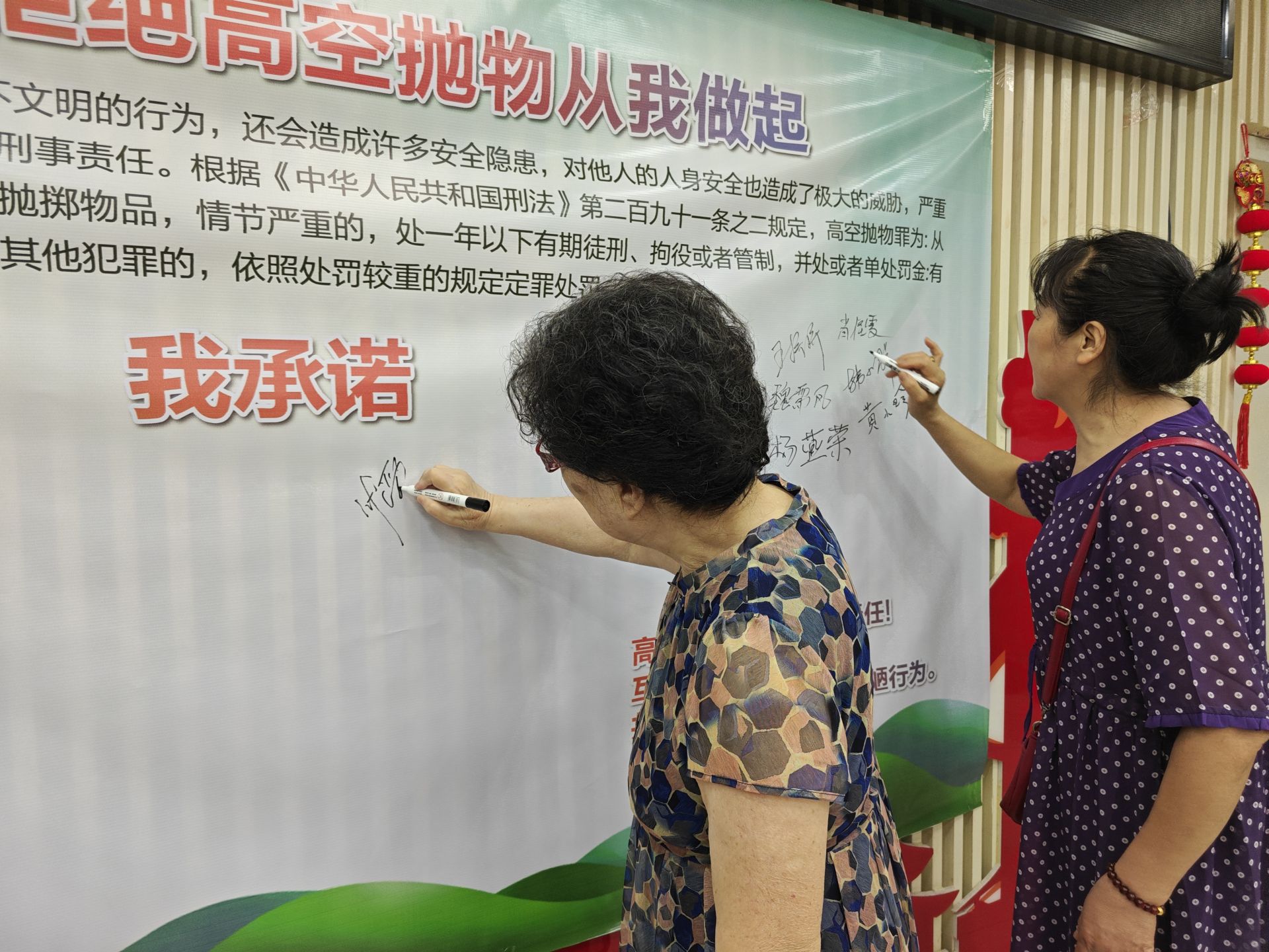 随后,大家在“拒绝高空抛物从我做起”的倡议板上签下自己的名字,争做文明行为的践行者和传播者,共同抵制高空抛物,及时自查、相互提醒、相互监督。活动现场还设置了环保相框DIY环节,大家将干花瓣和树叶认真地粘贴在亚克力板上,制作出别致的相框,把美丽的景象永远保留下来。