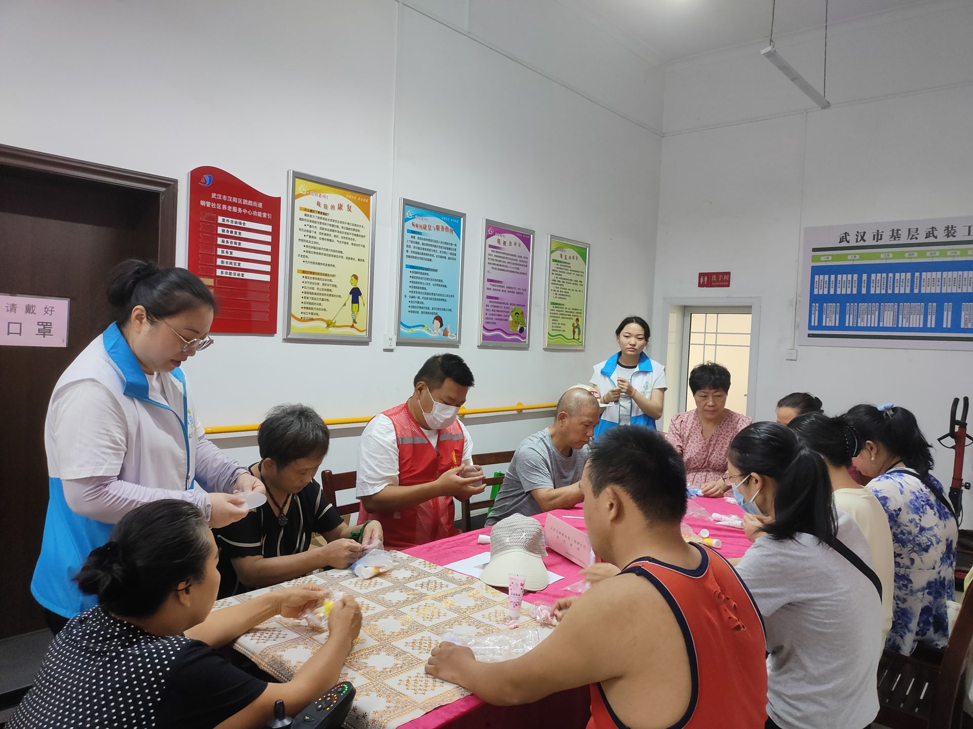 为了丰富辖区残疾人业余生活, 进一步激发残疾人的手工创作灵感和创作热情,并让残疾朋友在创作过程中感受设计和实用相结合的乐趣,8月23日,武汉市汉阳区鹦鹉街道阳光家园项目组织辖区内20余位残疾人在钢管社区一楼活动室开展主题为“奇思妙想 匠心智造”手工制作奶油胶手机支架小组活动。