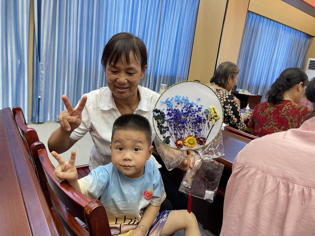 期间,大家互相交流心得,不一会,原本空白的扇面上便花团锦簇、蝴蝶翩翩,错落有致,一把把清新淡雅的团扇便呈现在大家面前。居民罗阿姨还拿着自己专属的团扇一直拉着志愿者帮她拍照,说要多拍几张回去和家人分享。