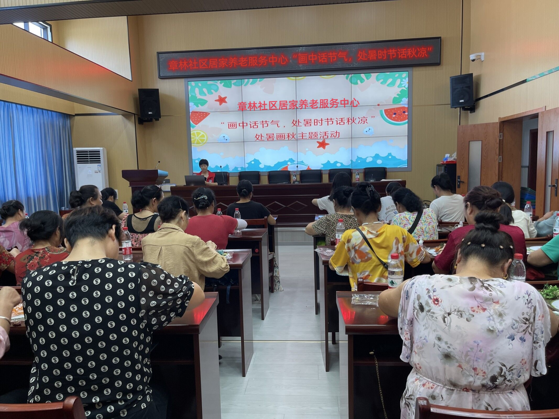 活动伊始,养老社工向大家介绍了“处暑”节气的文化和习俗。处暑,是二十四节气之第十四个节气,于每年公历8月22日—24日交节。处暑,“处”是终止的意思,表示炎热即将过去,暑气将结束。处暑,就是提醒人们暑气渐渐消退,天气由炎热向凉爽过渡,要注意预防“秋燥”。