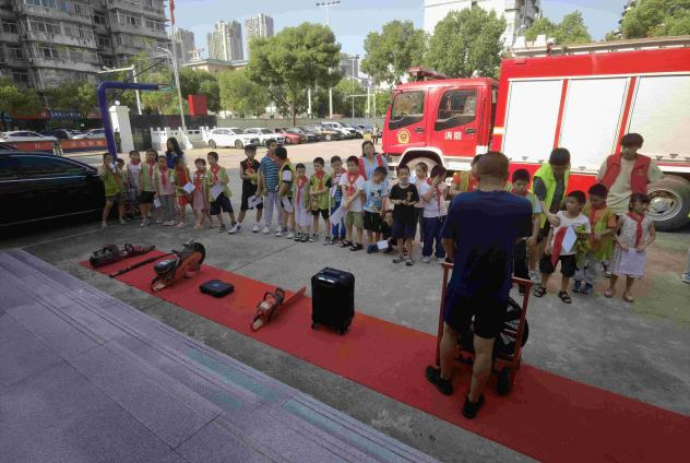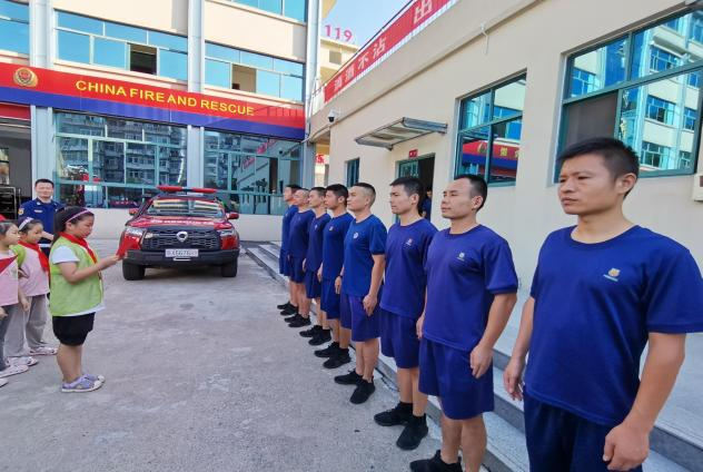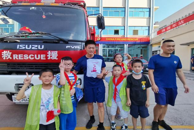 为了进一步提高钢都花园街道绿景苑社区四点半学校青少年的消防安全防范意识,增强青少年安全教育和自我保护能力。8月24日,武汉市青山区钢都花园街道绿景苑社区四点半学校联合钢都花园社工站,组织四点半学校的青少年共同前往共建单位武丰消防中队,开展“走进消防站,致敬火焰蓝”参观活动。