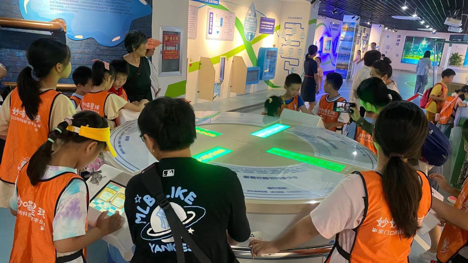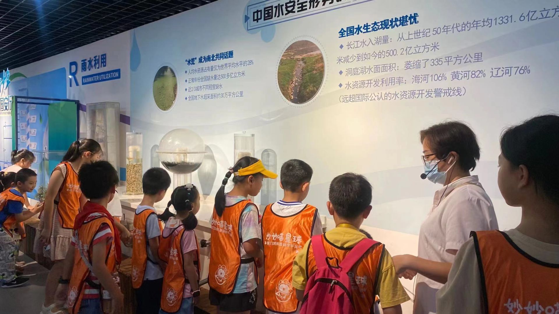 在武汉节水科技馆内,注重节水技术的深度展示,并与江城百湖美景和独特的水文化相映衬,带小朋友们走进一个水技术与水文化水乳交融的世界。家长、孩子们饶有兴趣地聆听着节水科技馆讲解员讲述水文化、水资源、水环境、水生态、水安全情况,在“雨水利用”“节水灌溉”“智能节水家庭”等互动区域,通过沉浸式参观,实践式体验,让大家对节水护水和水安全意识有了更直观的感受。