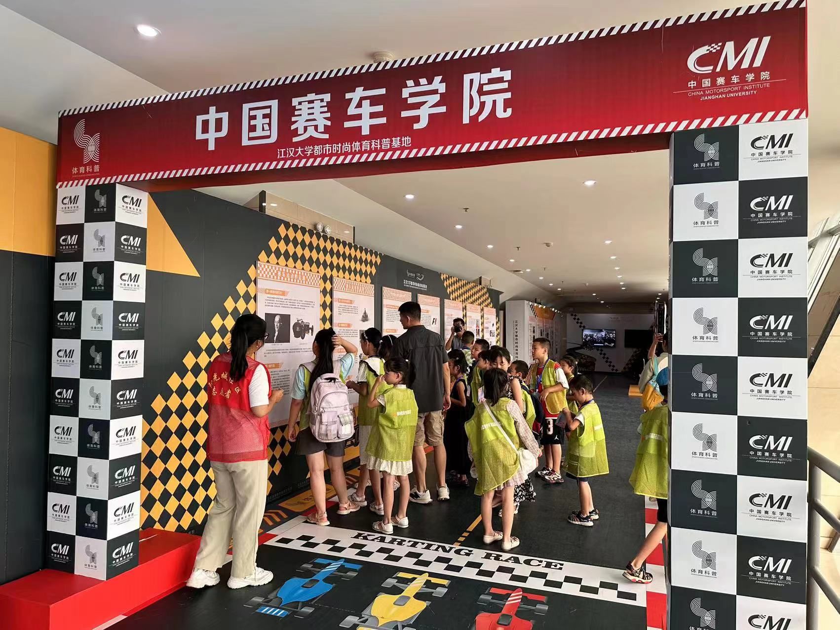 在江汉大学科普基地主展厅,大家近距离参观了高尔夫、自行车、浆板、户外赛车等都市时尚体育项目。在科普基地体验区,在专业人员的指导下,孩子们近距离体验了高尔夫、攀岩、赛车等运动项目。每到一处小朋友们都摩拳擦掌、全情投入,与专业人员积极互动,学习体育科普知识,感受运动的乐趣。