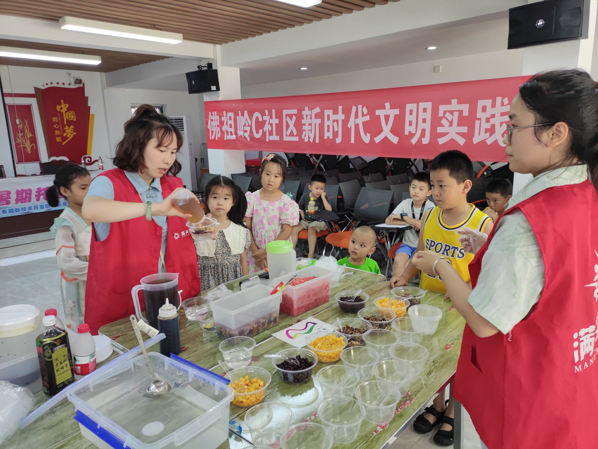 为了营造社区和谐友爱的氛围、丰富青少年暑期生活,8月23日,武汉东湖高新区佛祖岭C社区新时代文明实践站携手满天星社工开展了“花式冰粉幸福‘食’光”为环卫工人送清凉行动。让孩子们用自己的双手为户外高温工作的环卫工人送去爱心。