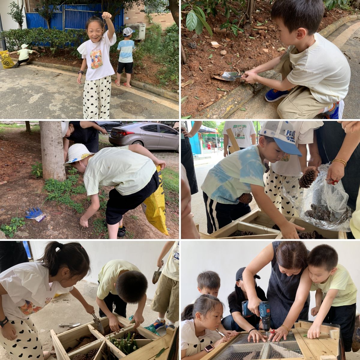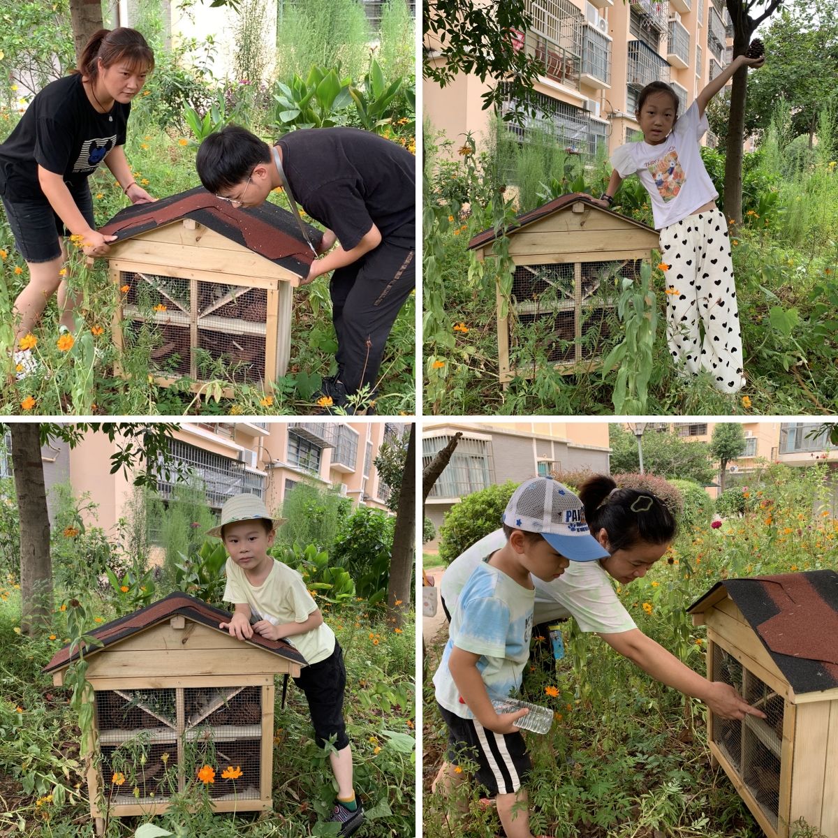 紧接着,大家来到社区的“精灵园”,为即将到来的小精灵们装置好它们的居所。孩子们都兴奋地憧憬着昆虫屋住满旅客的场景。