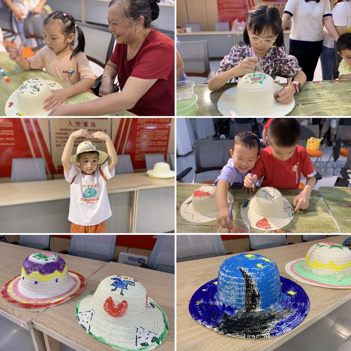 每一个小朋友都认真地构思自己草帽上的图案,有的自己创作,有的则参考了艺术大家的作品。