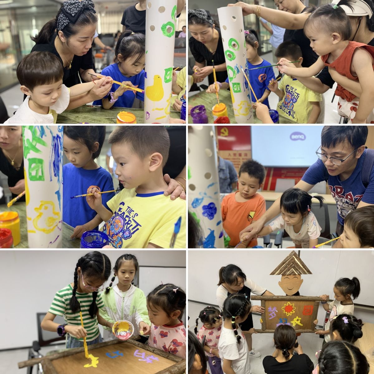 在实操制作过程中,大家团结协作,大一点的孩子负责打孔,小一点的孩子则负责蚯蚓塔的绘画美化。