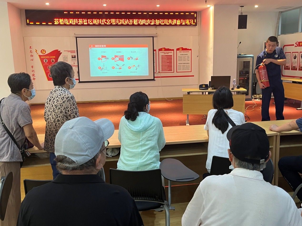 8月26日上午,武汉市江岸区花桥街道科苑社区党委联合辖区武汉扬子物业管理有限公司共同邀请二七路消防救援站的工作人员来到科苑社区党群服务中心,开展了”平安护夏”消防安全知识讲座与演习活动。