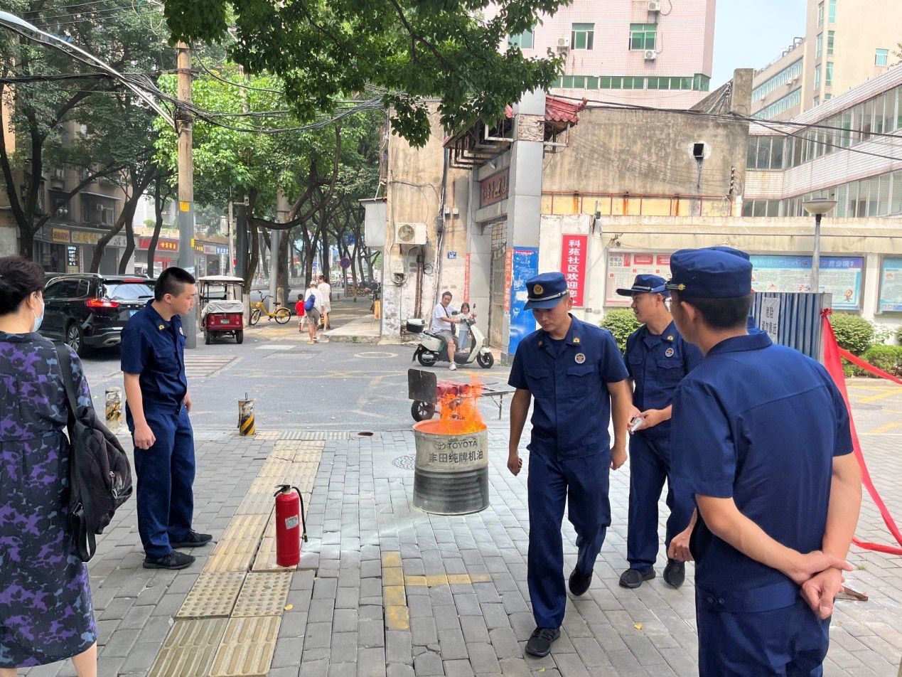 随后二七路消防救援站的王队长为居民带来了精彩的消防安全知识讲座和演练。介绍了消防安全隐患的种类,以及处置这些隐患的方法,出现火情后要第一时间拨打火警电话119,同时讲明详细地址、起火部位、着火物质、火势大小、留下姓名及电话号码,并派人到路口迎候消防车。发现火情后向附近的人呼喊,呼救,以及火灾的应变和逃生技能。讲解灭火器和消防栓的正确使用方法,居民们都非常认真地听着。消防队的工作人员在社区楼下科技苑小区又进行了消防安全演习,现场向居民们展示干粉灭火器正确的使用和喷出方法,让各居民亲自操作正确使用灭火器和消防栓进行灭火。