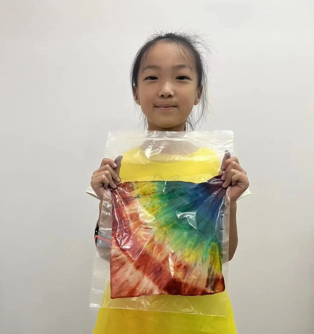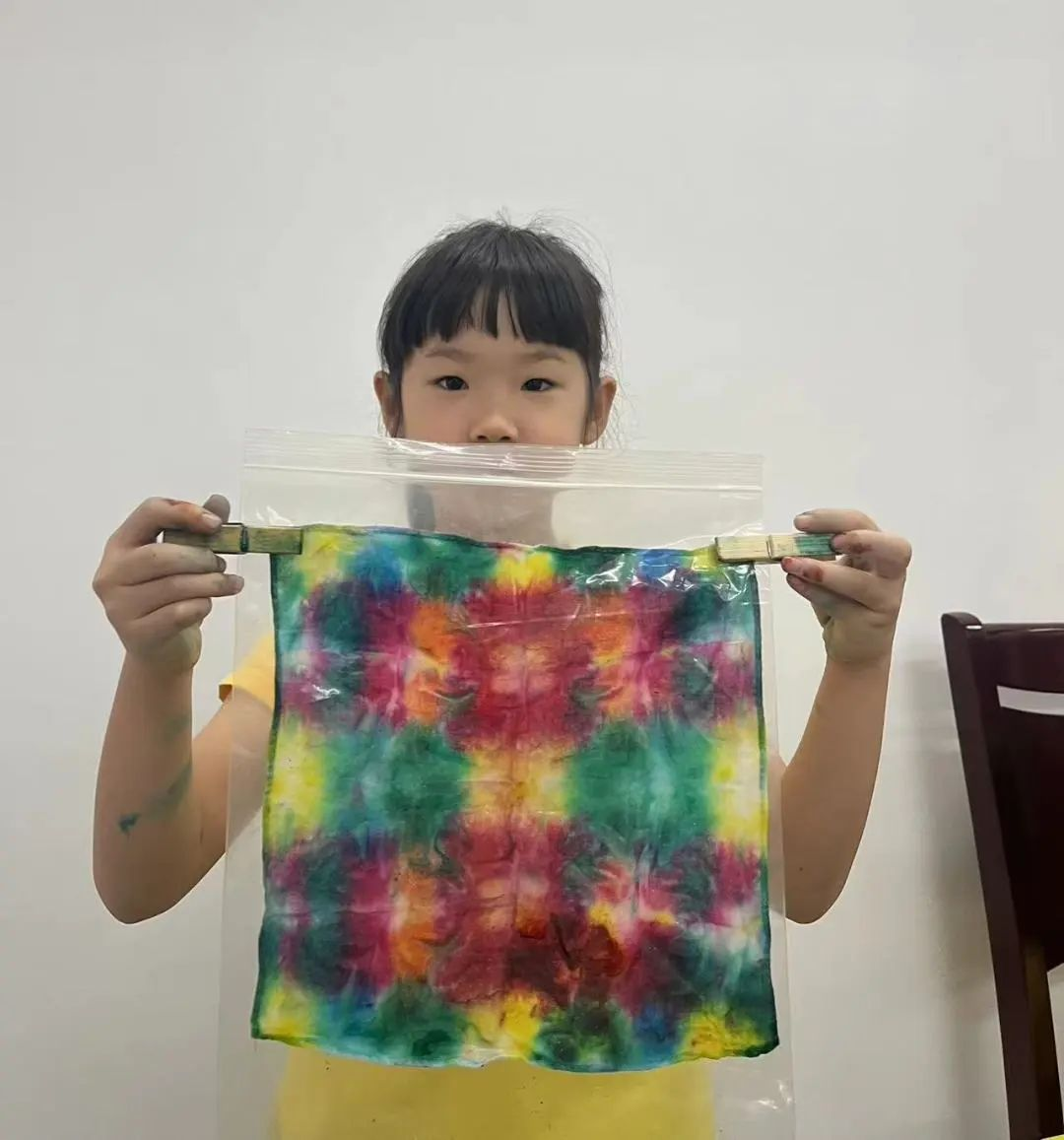 捆扎、染色、浸泡、晾晒……在志愿者的指导下,青少年们边听边看边动手,用扎染、蜡染等传统染布技艺制作小方巾。经过一个多小时地创作,一件件精美且独一无二的扎染作品呈现在大家面前,扎染艺术的独特性和随机性让参与制作的青少年们不由得发出惊叹声。此次活动,既锻炼了孩子们动手实践能力,更让中华优秀传统文化在孩子们心中落地生根、开花结果。