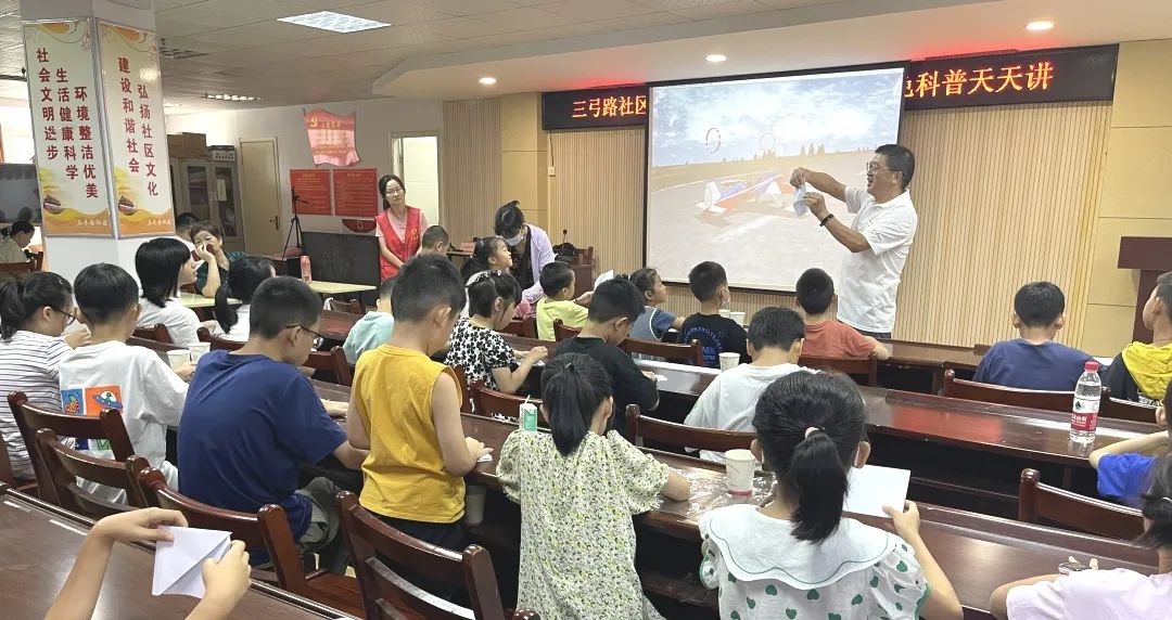 “你们知道飞机是如何飞在天上的吗?”三弓路社区开展纸飞机制作主题活动上,讲课老师悉心地讲解了飞机如何起飞以及驾驶的各种操作方式,通过模拟飞行实践操作,为“四点半学校”青少年们打开科技之门。