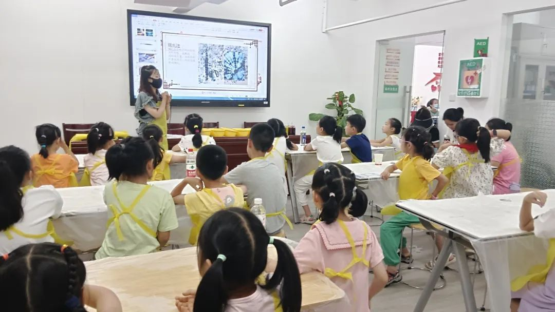 扎染作为非物质文化遗产,是中华民族文化的一部分,也是中国民间传统而独特的染色工艺,有着丰富的文化内涵。活动中,志愿者详细介绍了扎染的起源、传承、发展、制作工艺、应用范围等,并通过展示图片、播放视频向青少年们展示扎染艺术作品。