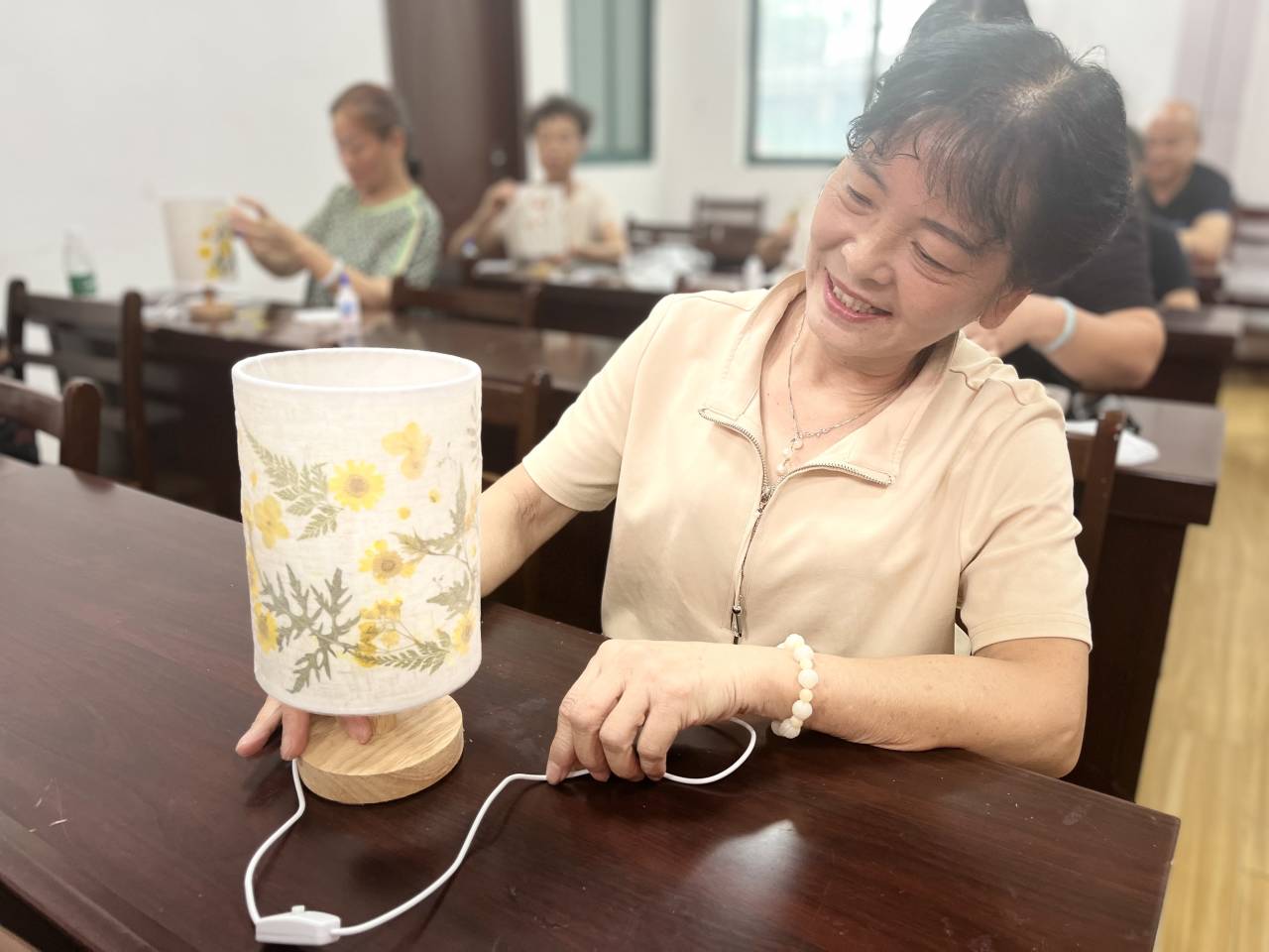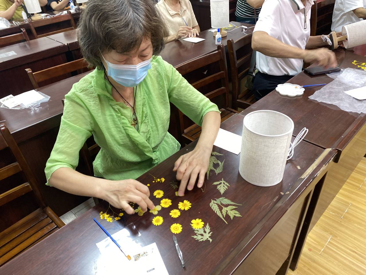 活动现场,准备好的干花、镊子、剪刀、灯罩、底座等材料已经整齐摆好。非遗传承老师边讲解边示范压花台灯的制作技巧。随后,妇女同胞们开始发挥想象力和创造力,选取心仪的压花素材设计构图,大家发挥自己的创意与构思,将花材黏贴、调整、固定,大家边制作边互相交流,把做好的灯筒与灯座组装在一起,一盏盏独一无二的精美压花台灯就完成了。“今天参加这个活动我感觉特别有意义,自己动手做一个心仪的礼物,感觉心情特别好。”张姐高兴地说。