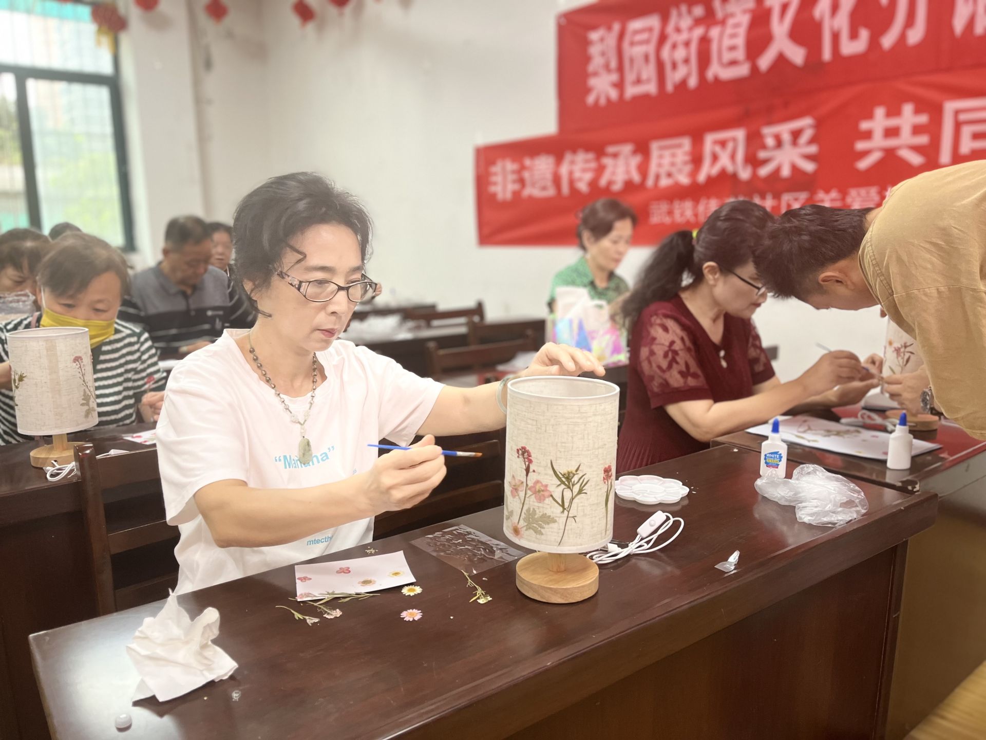 为进一步倡导广大家庭培育良好家风,弘扬优秀传统文化、树立呵护女性、关爱儿童的文明风尚,8月28日,武汉市洪山区梨园街道武铁佳苑社区开展了“花香灯影绘新篇 创意点亮新生活”DIY压花台灯手工制作活动,辖区共30余名妇女参加了活动。