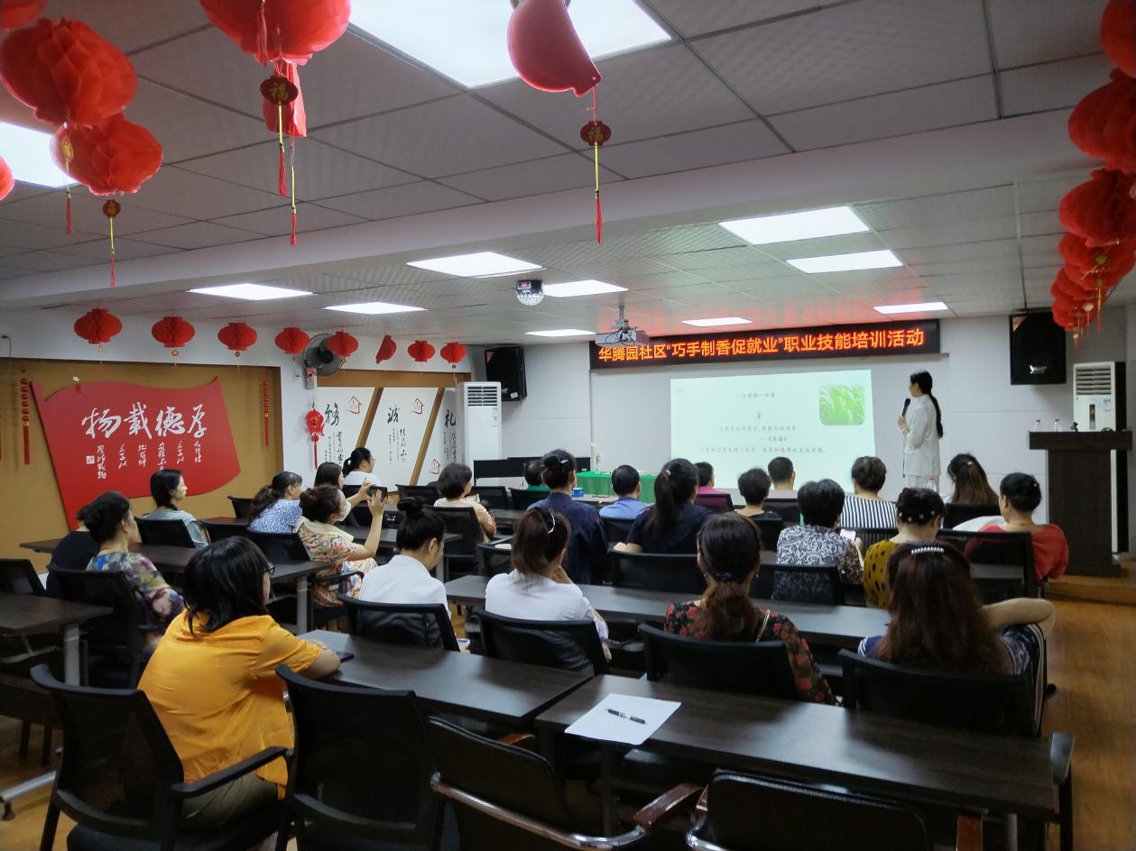 为做好辖区居民就业服务工作、进一步深化广大居民职业技能培训工作,近日,武汉市洪山区梨园街道华腾园社区开展了“巧手制香促就业”的培训活动。