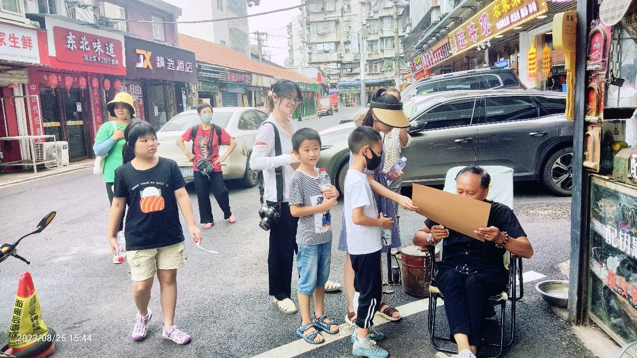 走在路上,不时能听到孩子们因为完成一个打卡任务而传来的欢笑声,但也有遇上阻碍的时候,因时代变迁,很多建筑物都已不复存在,这个时候大家便开始询问路边的爷爷奶奶过去这里的面貌,在老人的讲述中古城背后的历史轮廓便展现在孩子们的眼前。不一会儿,三个小组便完成了打卡任务。