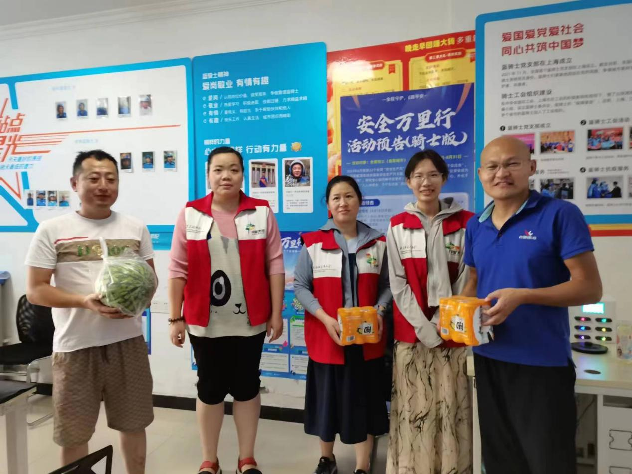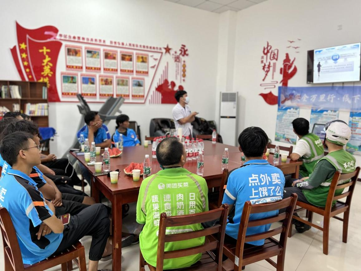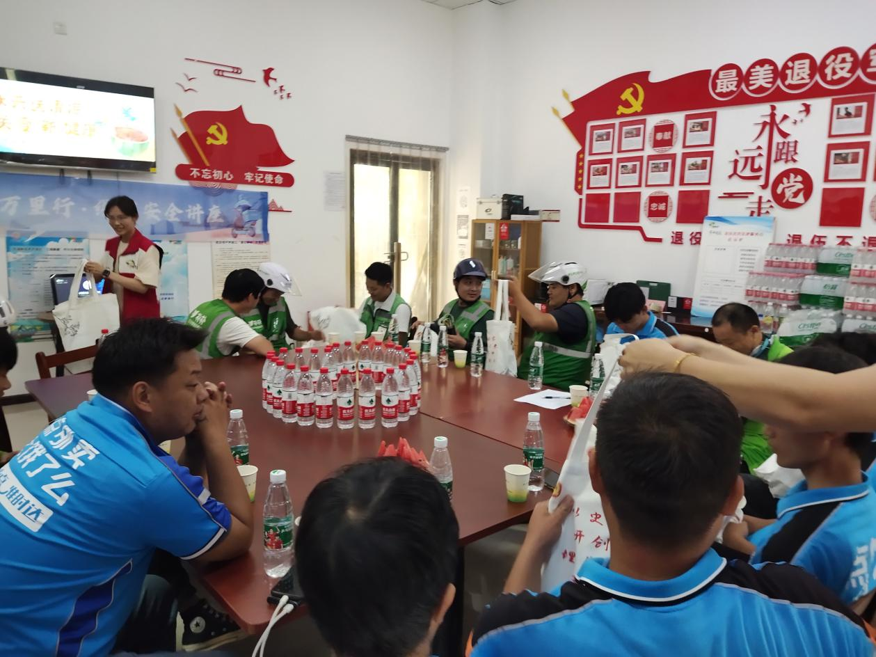 为了将党和政府的关爱传递给更多的骑手小哥,在活动结束后,祥和雅居社区工作人员带着西瓜和消暑饮品,走进辖区外卖与快递站点,为因工作没能够参与活动的小哥们送去夏日的清凉。