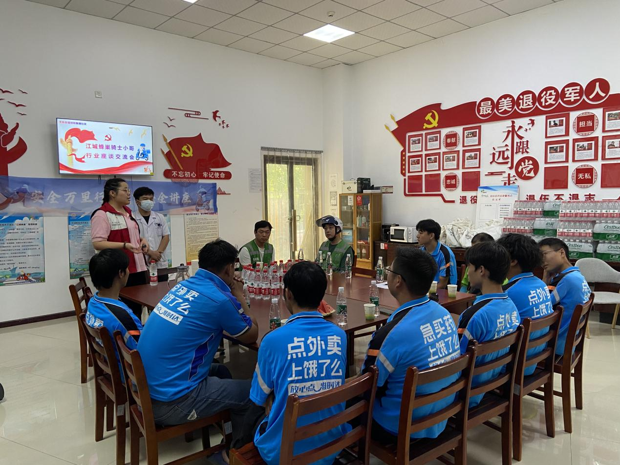 在活动最后,社区党委特别增加了“骑士小哥行业交流分享”环节,不同站点的骑手小哥们分享了自己工作中所面临的困难以及处理方式,社区党委也倾听了骑手们对社区工作及“江城蜂巢”驿站建设的建议。