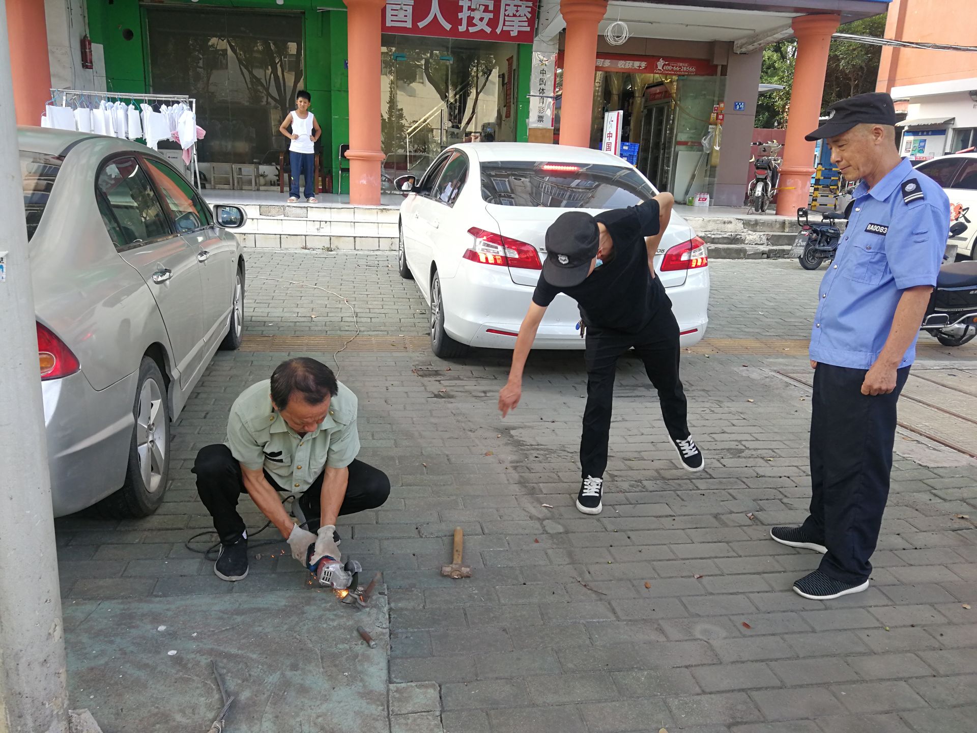 社区工作人员了解情况后,立即行动,首先拨打电力维修电话,为防止其他人摔倒,社区及时联合南航花苑南鑫苑物业工作人员以及周边热心的店面老板,大家纷纷提供工具,齐心协力很快将裸露在外的固定桩和铁丝处理干净了。居民们都伸出大拇指夸赞社区办事迅速。