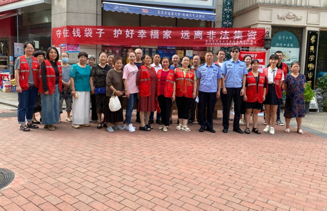 为提升居民对非法集资风险的认识和防范能力,8月29日,武汉经济技术开发区沌口街道新都社区在摩根空间小区广场组织开展“守住钱袋子 护好幸福家 远离非法集资”宣传教育活动,辖区民警现场讲述,引导居民培养正确的投资理财观,自觉远离非法集资。