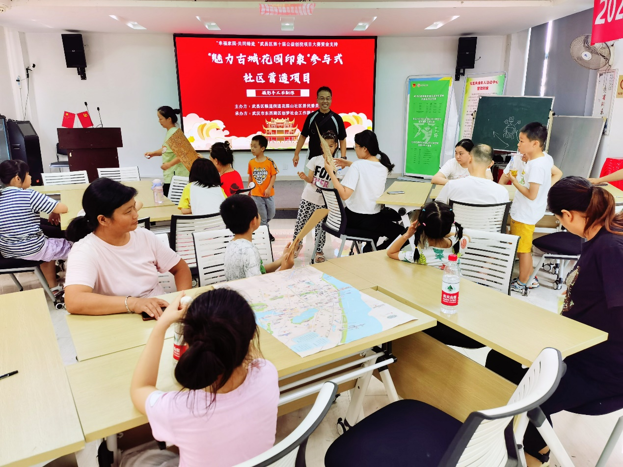 你走过的路,观察到的生活会以什么方式记录?亲手制作一本摄影手工书将会是一种什么样的体验?武汉市武昌区粮道街花园山社区的10余组亲子家庭带来了他们的答案。8月29日,花园山社区联合武汉市东西湖区创梦社会工作服务中心开展了一场以“魅力古城·花园印象”为主题的认知地图摄影手工书制作活动,孩子和家长们以亲子共创方式创作了一份独属于他们自己记忆的手工书。