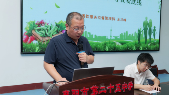 襄阳市市场监督管理局餐饮服务监督管理科科长王洪峰受邀作《落实主体责任,严守食安底线》主旨发言。他从落实食品安全两个责任、食品安全操作规范要求、食品从业人员卫生要求、食物中毒的原因及预防、建立健全突发事件应急机制五个方面,全面阐述了校园食品安全的规范和要求。