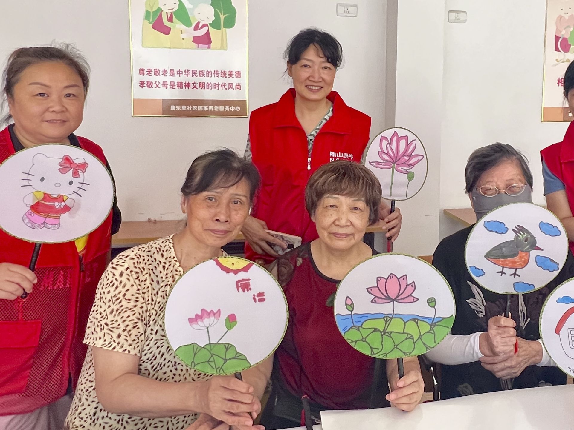 为了丰富老年人的精神文化生活,提升老年人的生活品质,营造助老、爱老的社会氛围。近日,武汉市武昌区积玉桥街道康乐里社区联合积玉桥街楠山有约颐养中心开展“巧手绘团扇 敬老暖夕阳”活动。