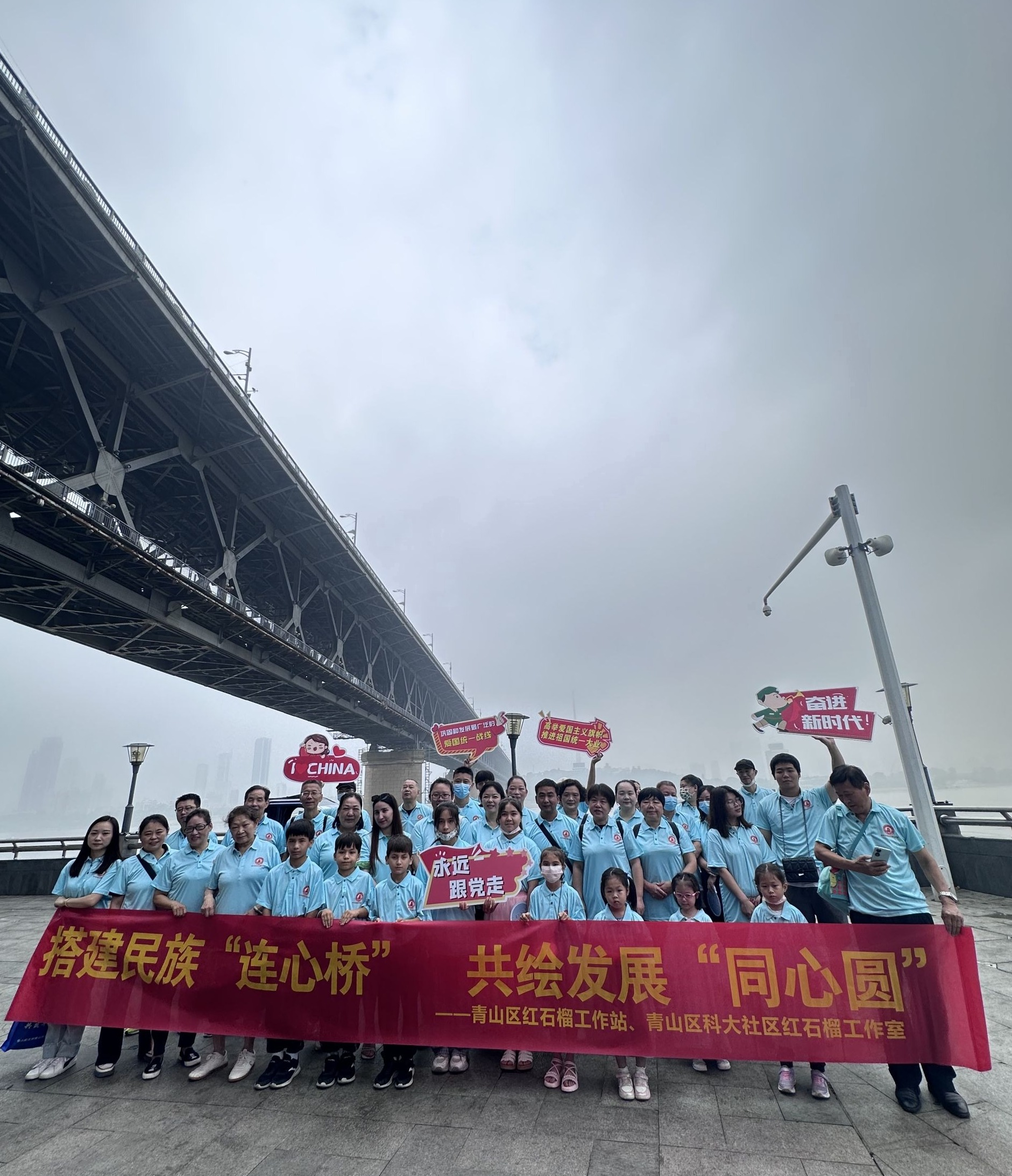 以八大家花园社区文明实践活动为契机,让少数民族居民、在汉求学的外籍学生沉浸式感受折扇书写的魅力,深化团结交流、推动文化认同。依托科大社区红石榴工作室,组织辖区少数民族人士、商户代表以及武汉科技大学外籍留学生等45人,打卡武汉长江大桥,参观辛亥革命博物馆,感受英雄武汉的文化魅力和文博力量,不断巩固中华民族共同体思想基础,共绘发展同心圆。