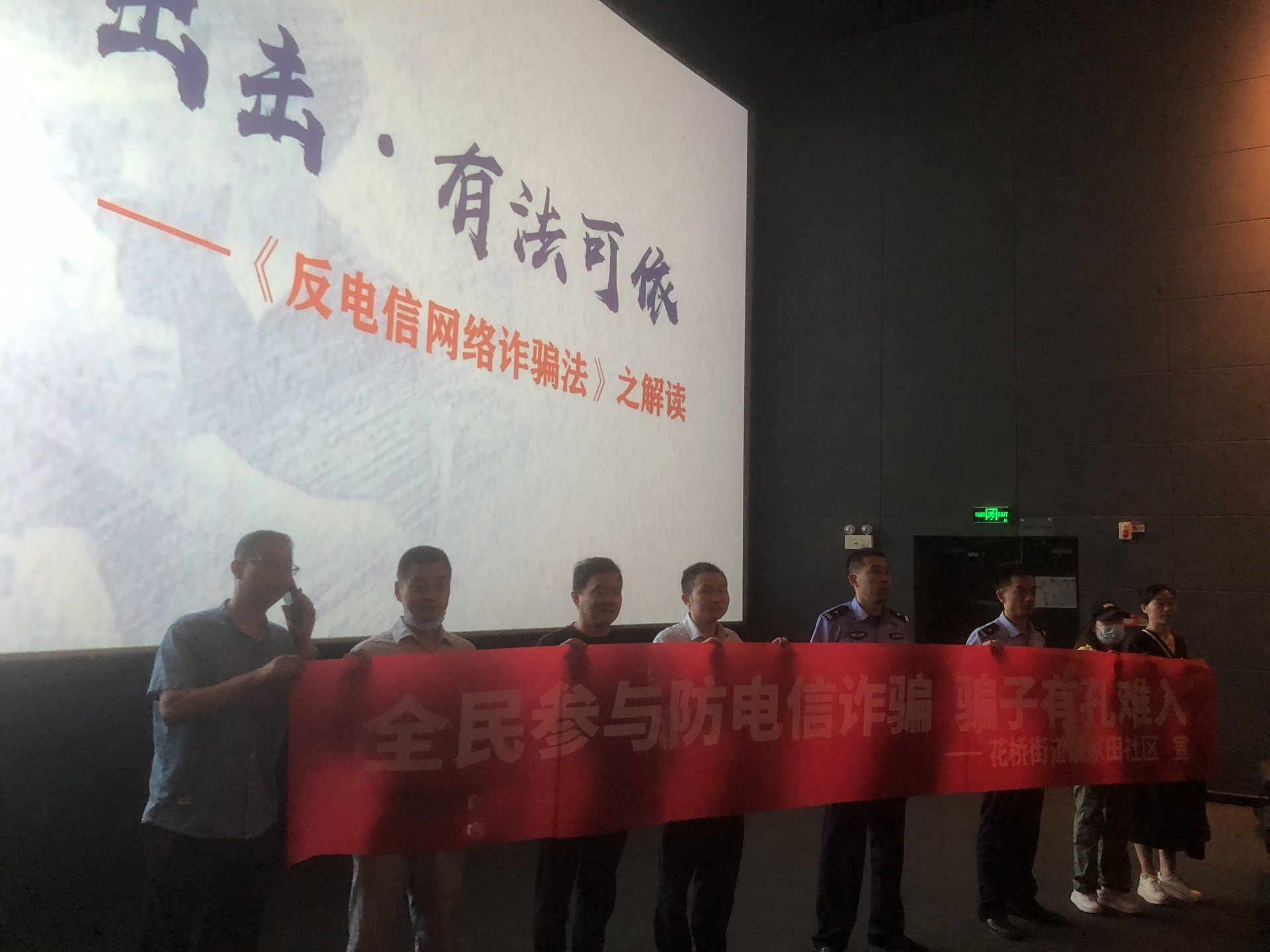 电影结束后还播放了《重拳出击,有法可依》防诈防骗宣传短片,社区民警阙善禄和大家说道:“如今诈骗手段日益翻新、日益隐蔽,但是万变不离其宗,碰到任何要你转账的陌生人,第一反映就要提高警惕,想一想他为什么要你的钱,第二反映就是三不做,不点链接、不告知验证码、不提供个人任何信息,第三反映就是犯了任何你不知道的“罪名”,想要辨真假不难,110咨询最放心!而对于年轻人,在这个互联网+的时代,除了以上三个反映,更要注意网络高薪诱惑、网恋交友诱惑,中奖诱惑等,天上不会掉馅饼,如果有绝大多数都是杀猪盘等着你,只有全民参与防骗防诈,骗子才会有孔难入”。