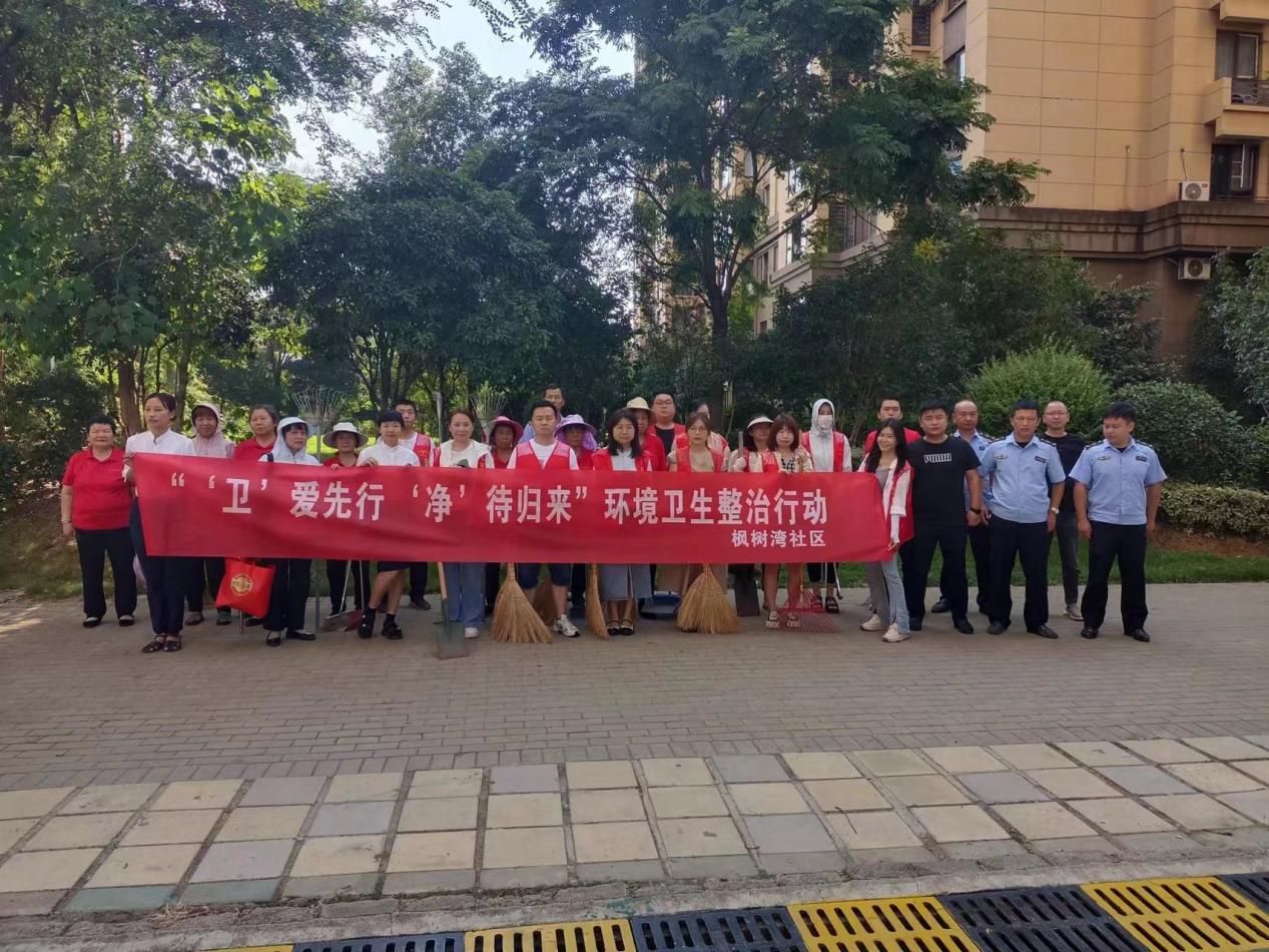 为弘扬爱国卫生运动优良传统,推动国家卫生城市复审工作顺利开展,8月31日,武汉市经济技术开发区沌阳街道枫树湾社区组织共建单位、物业公司及志愿者对公共区域开展一次“‘卫’爱先行 ‘净’待归来”环境卫生整治行动 ,此次活动共有五十余人参加。
